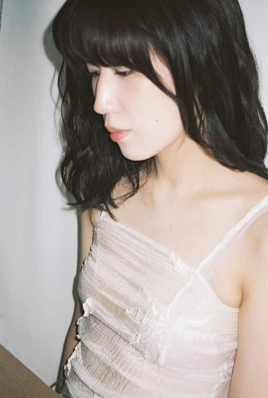 AZUR - Plissé Satin Silk Appliqué Tank Top - Off white + White