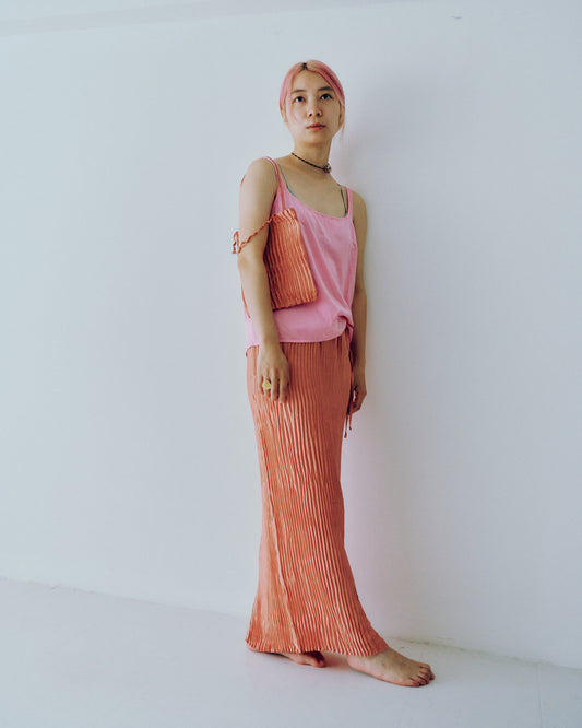 AZUR - Plissé Satin Silk Long Skirt - Blush