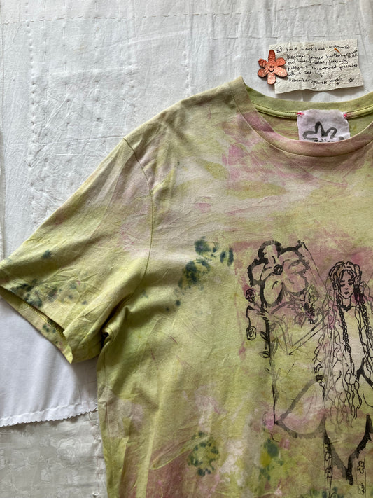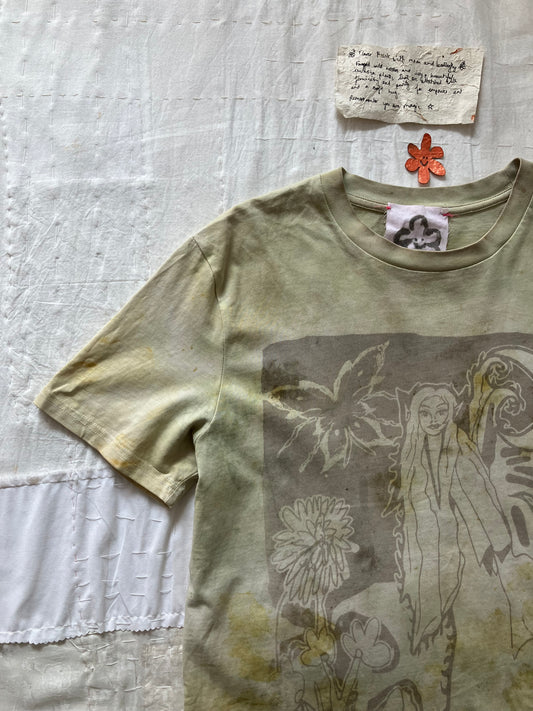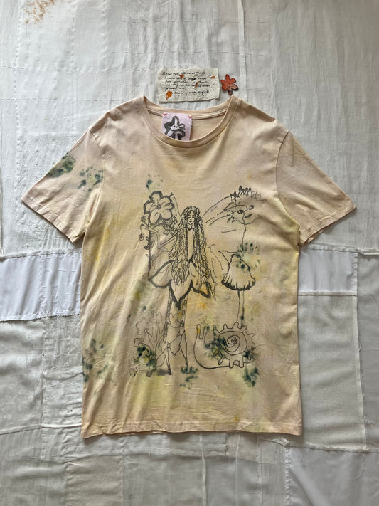 EIRINN HAYHOW - FOREST FAIRIE WITH SNAIL AND SUN TSHIRT 3 with bio flower patch