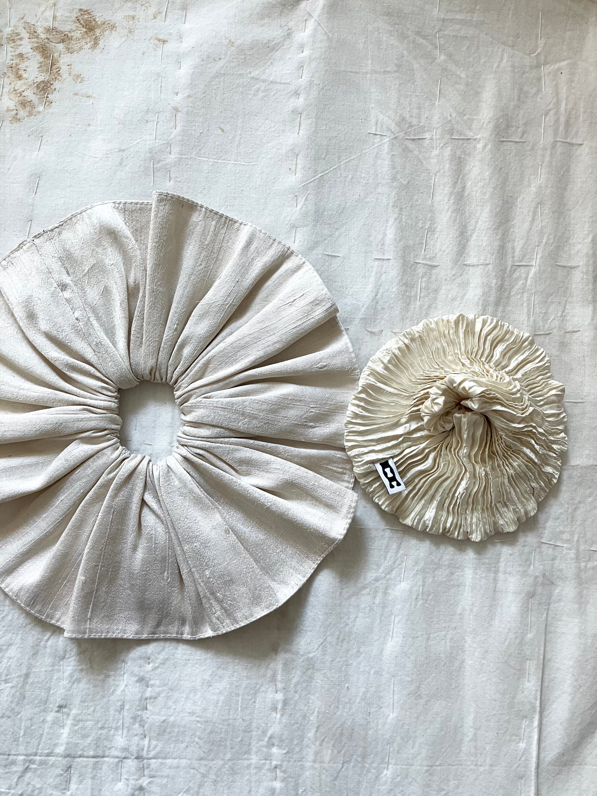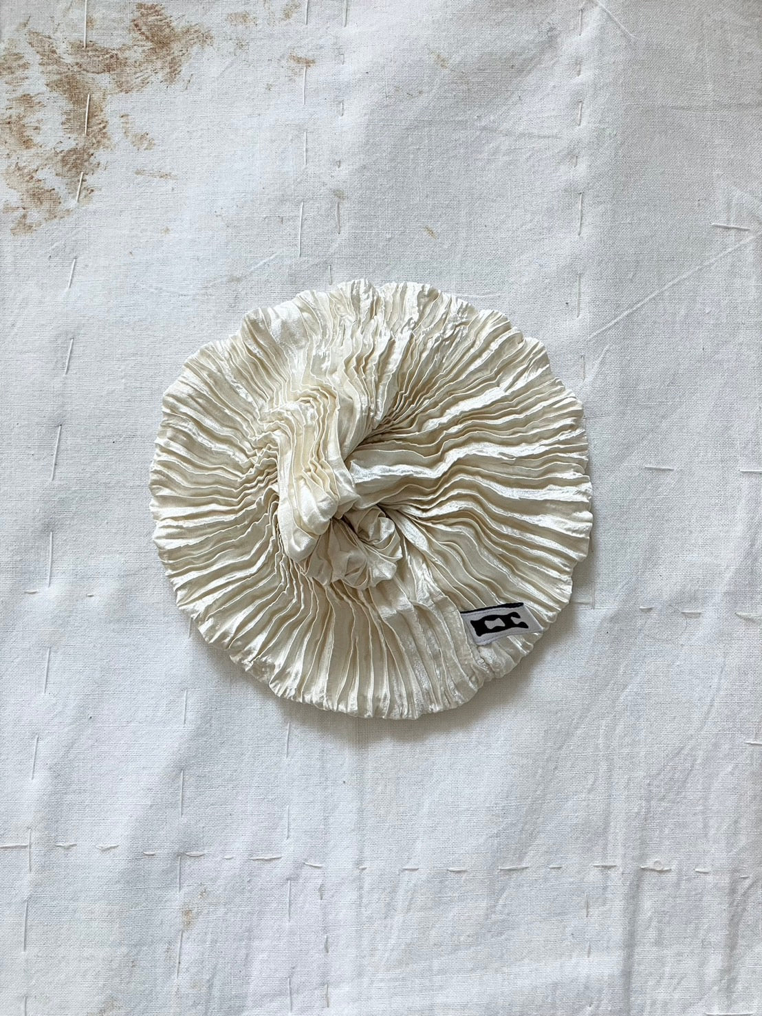 AZUR - Plissé Satin Silk Scrunchie - Off-white