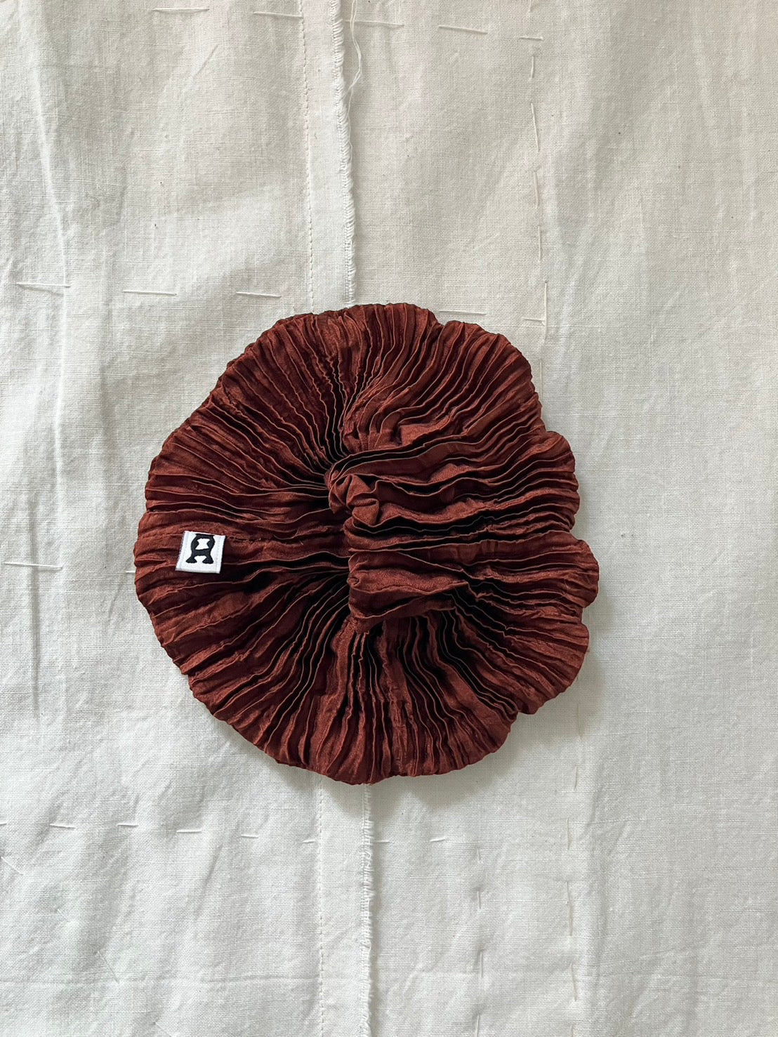 AZUR - Plissé Satin Silk Scrunchie - Mahogany
