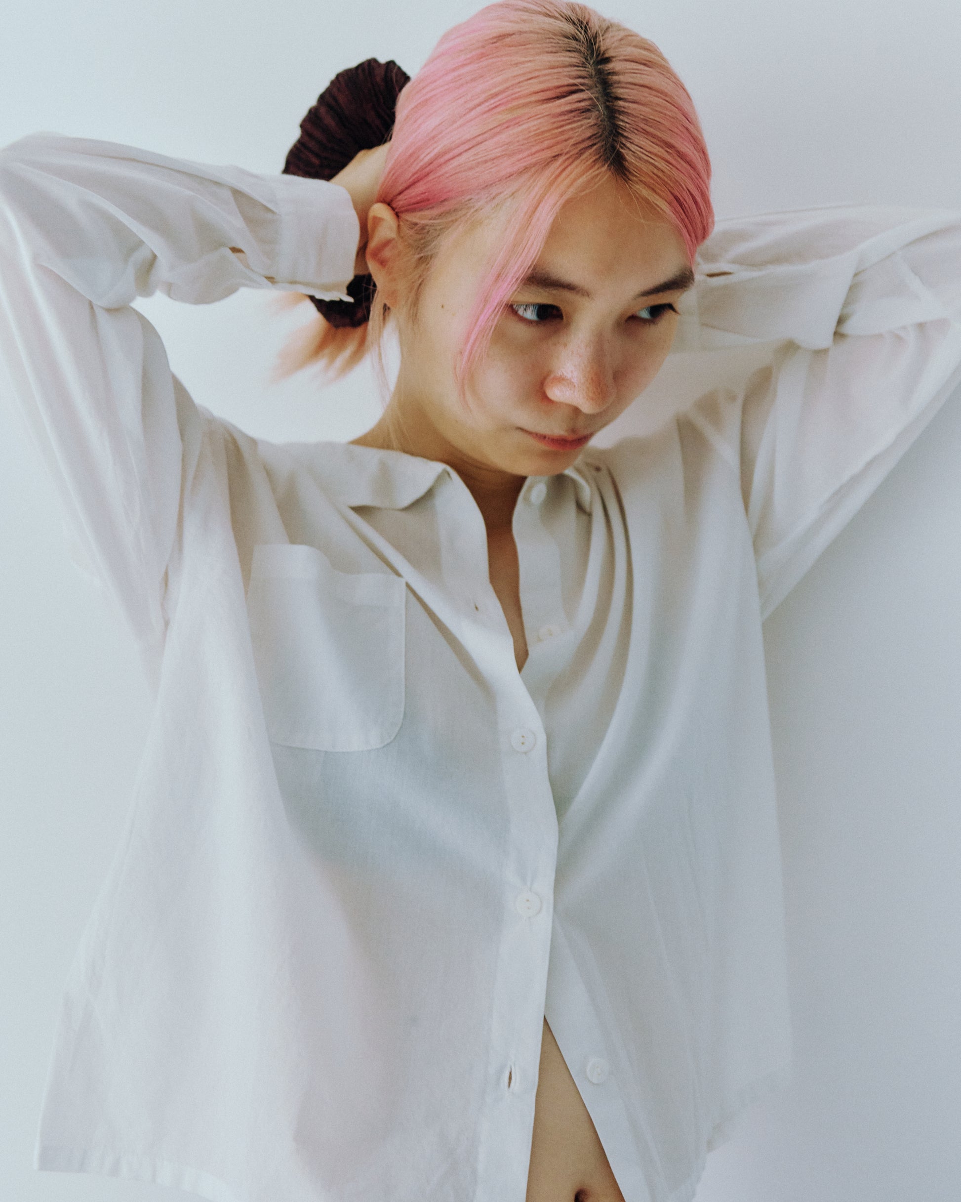 AZURの定番の人気アイテムでもある、シュシュ。シルクのやわらかく上質な生地は、ラフにまとめたヘアスタイルも上品に仕上がります。