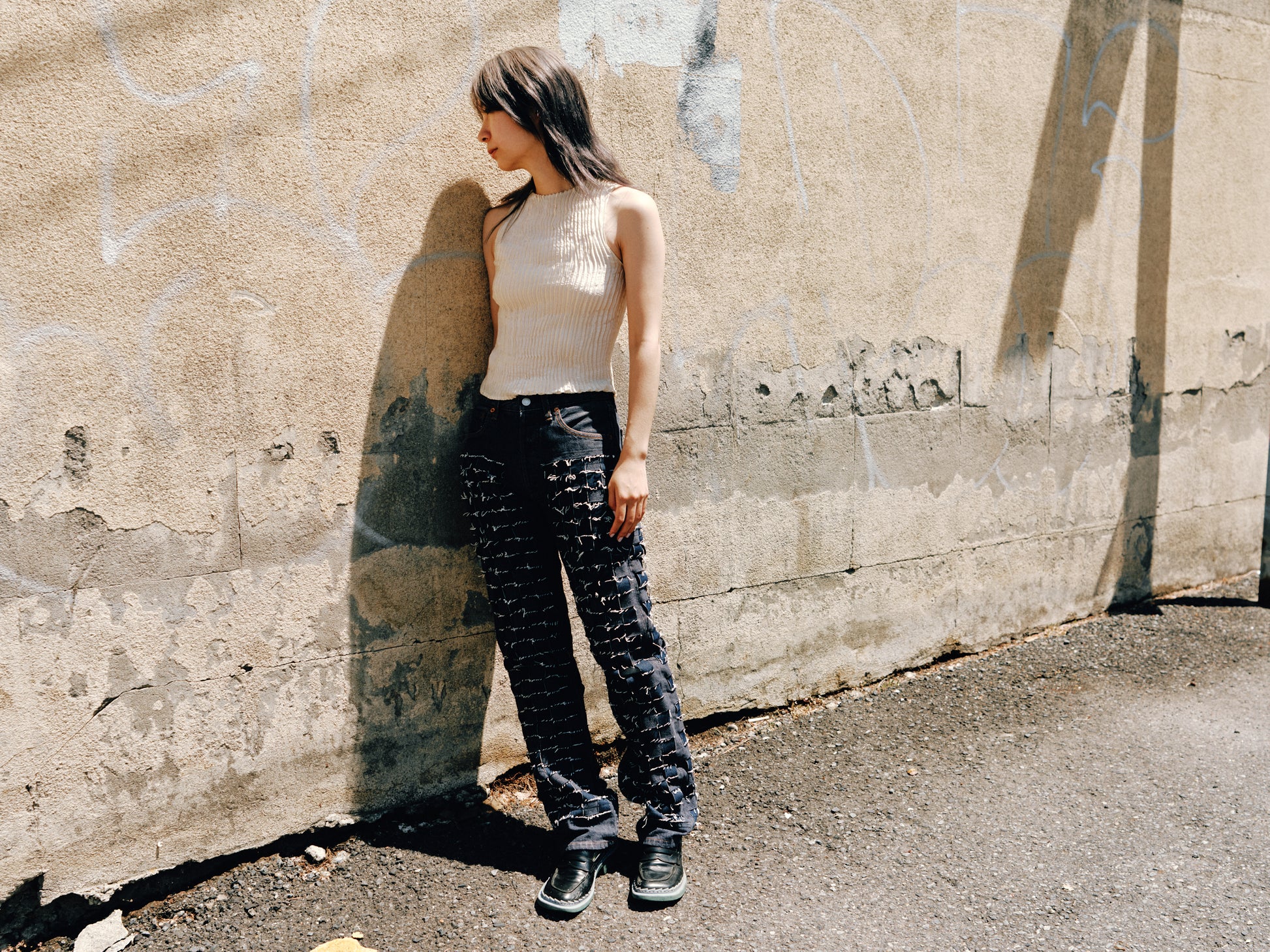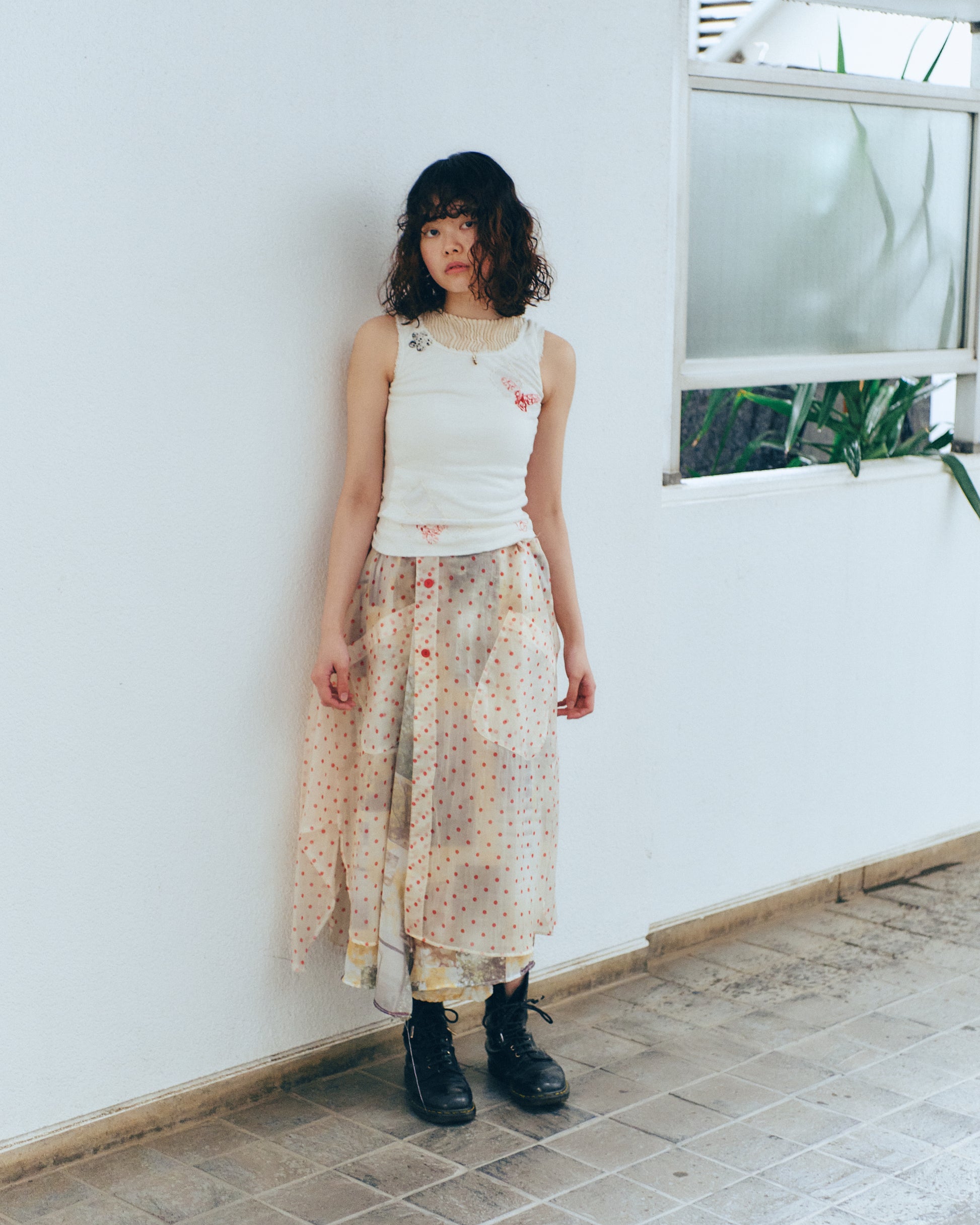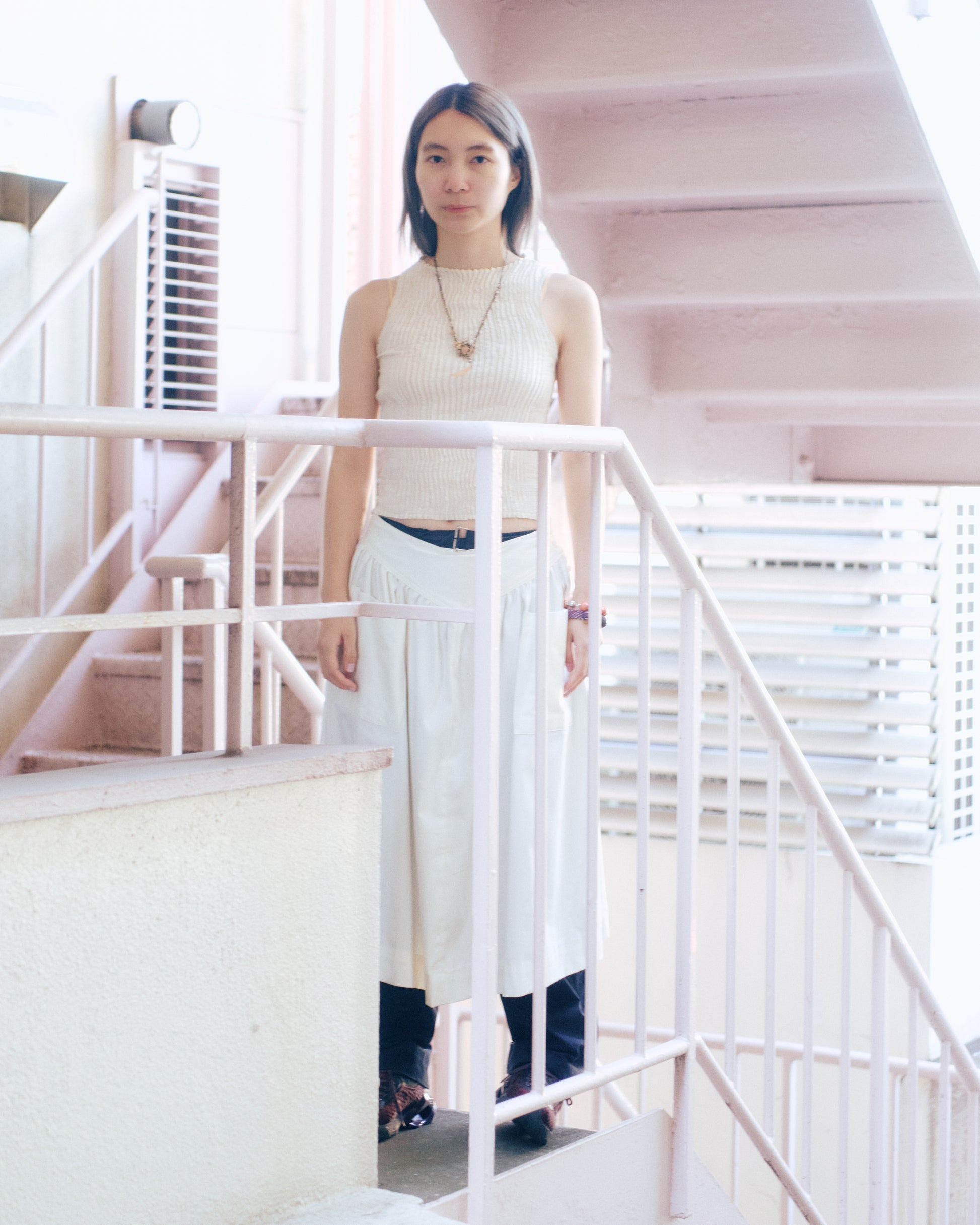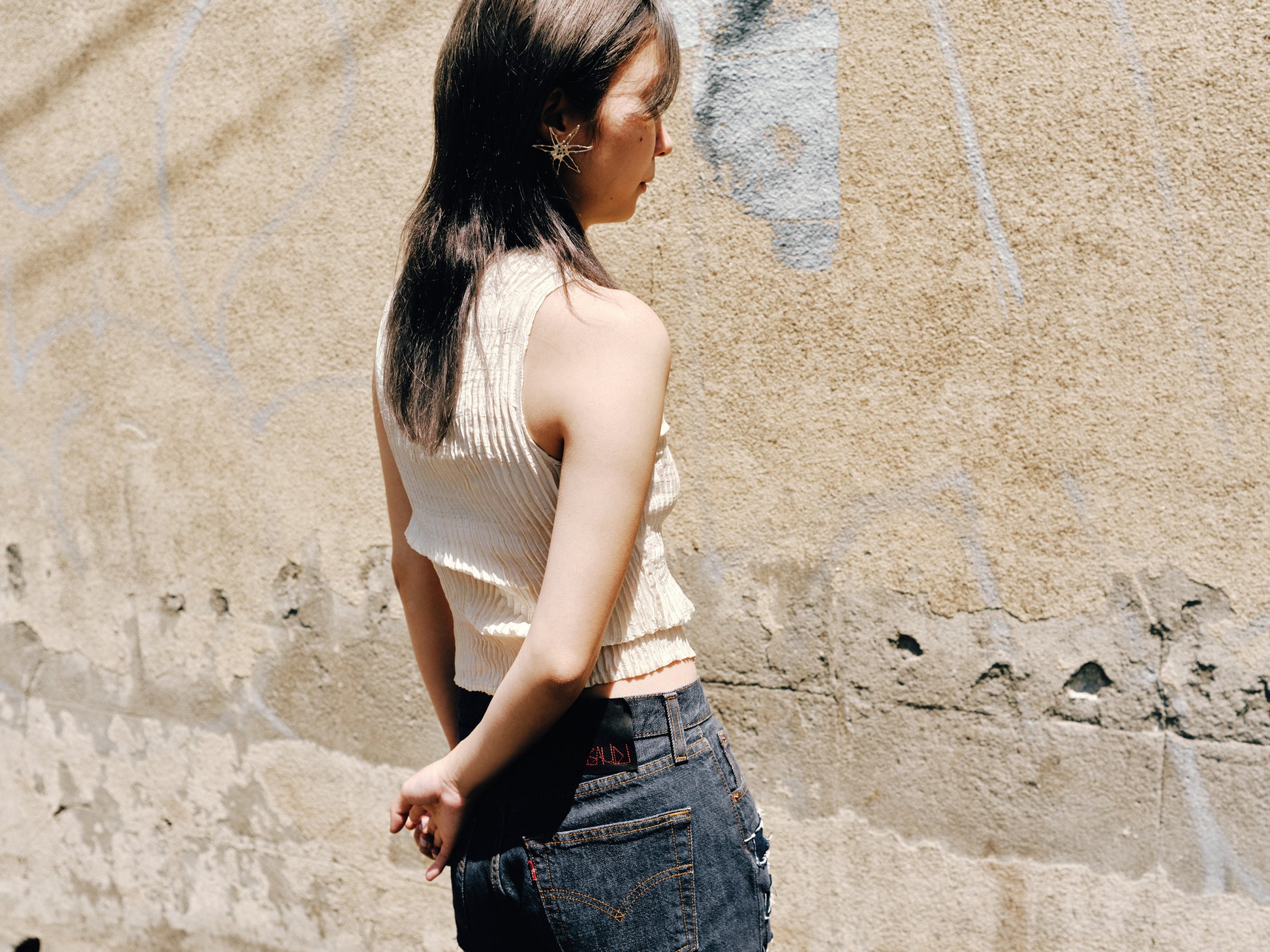 AZUR - Plissé Silk Tank Top - Off-White
