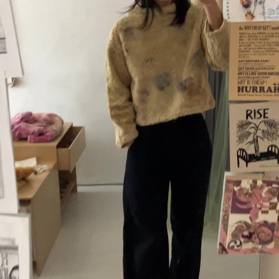 そして、散歩や冒険、地元の生産者を経由して手に入れた新鮮な野生の花を、生地の表面にプレス加工しています。一つひとつが一度限りの偶然の模様で、使用された植物それぞれの小さな物語を宿しています。