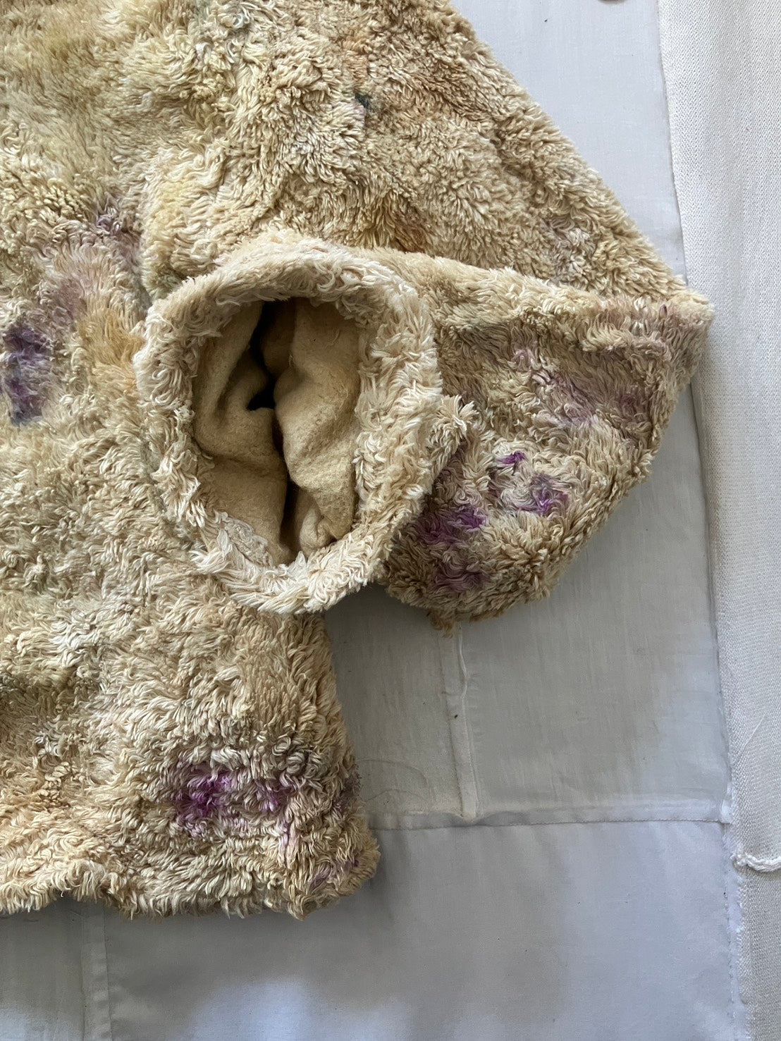 ヘンプファーをお花で染めて手作りした、一点もののフーディ。