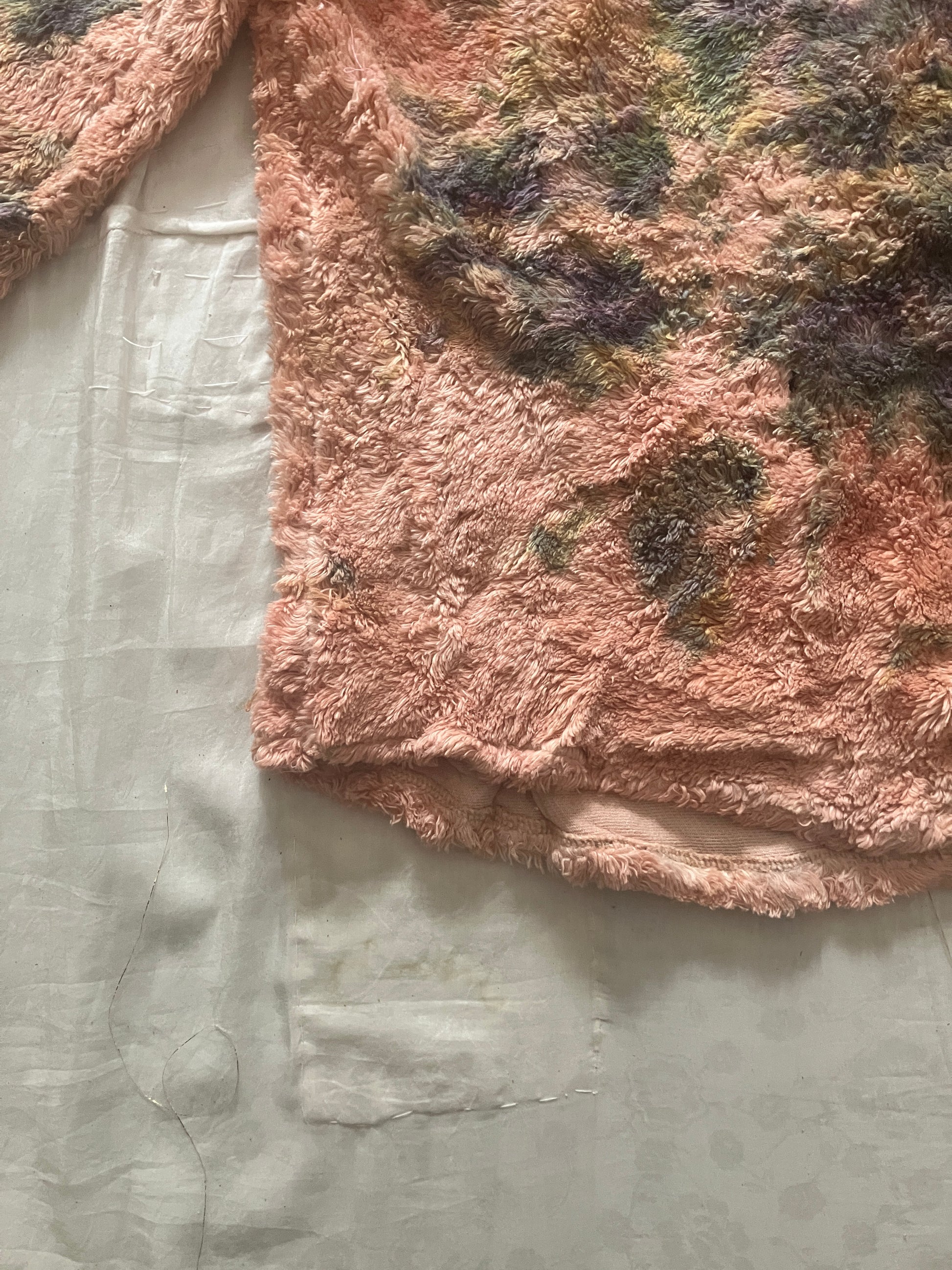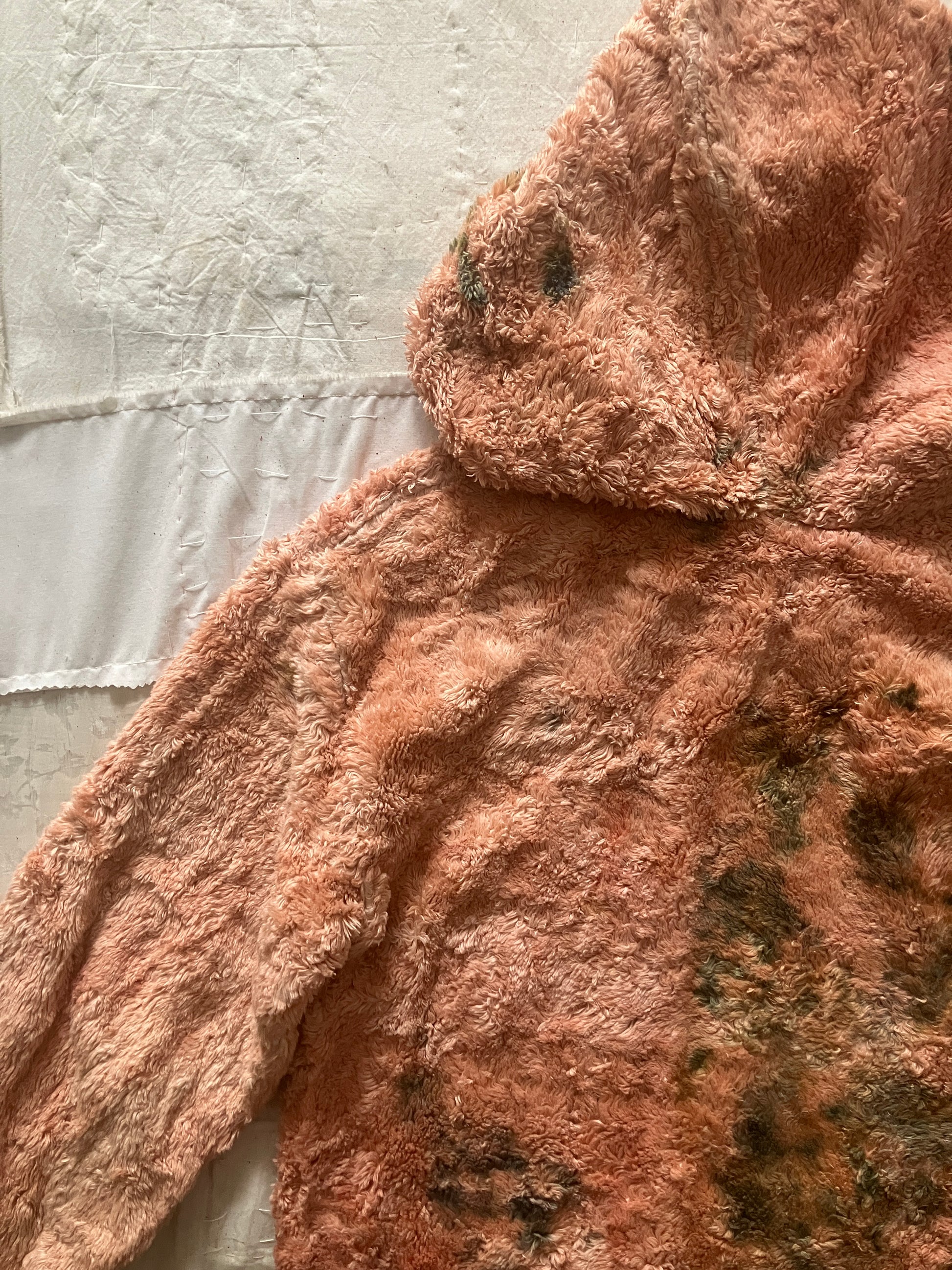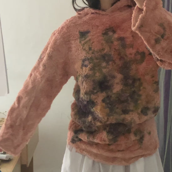 ヘンプファーをお花で染めて手作りした、一点もののフーディ。