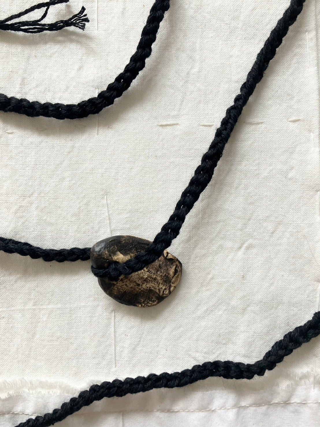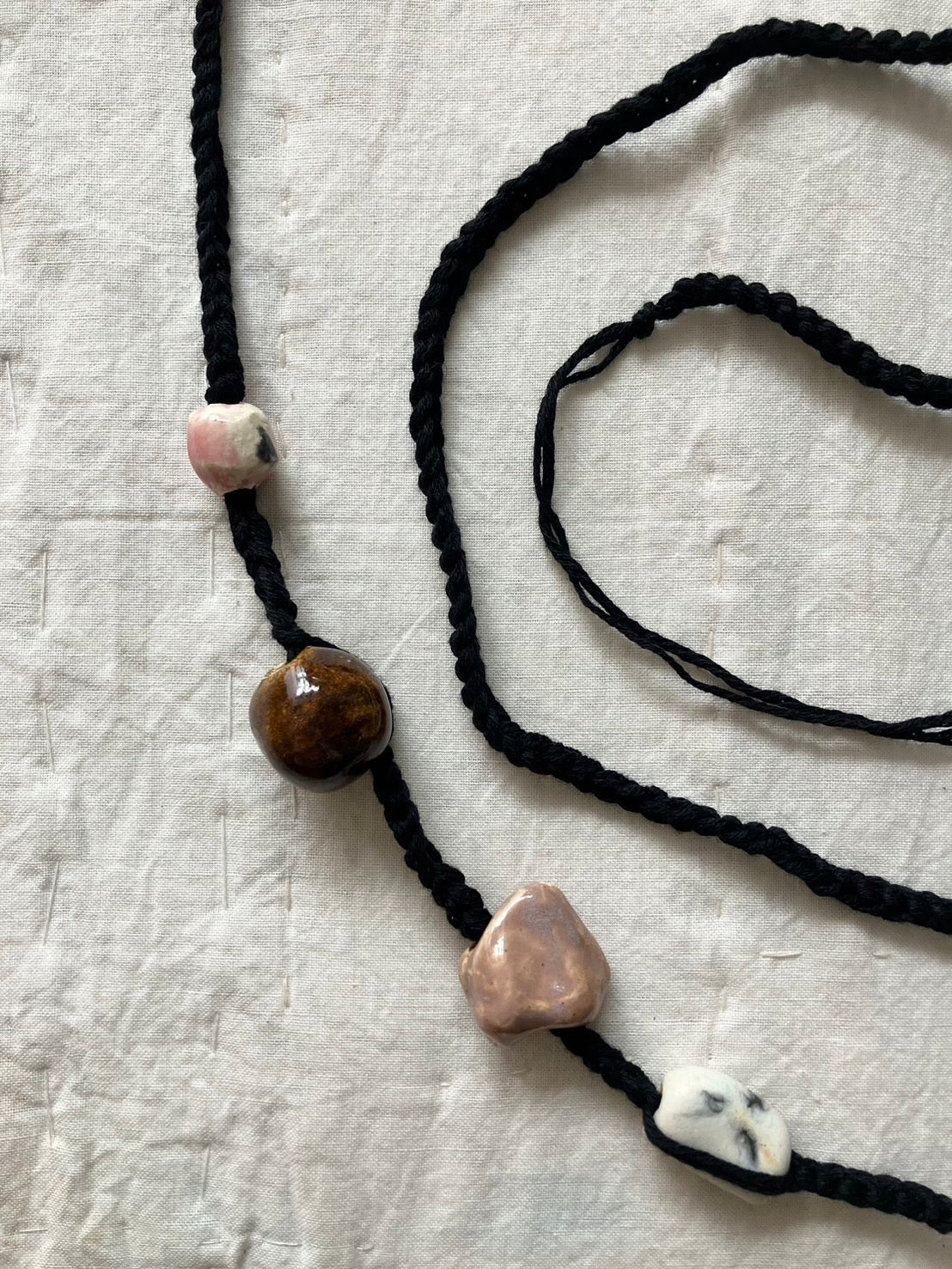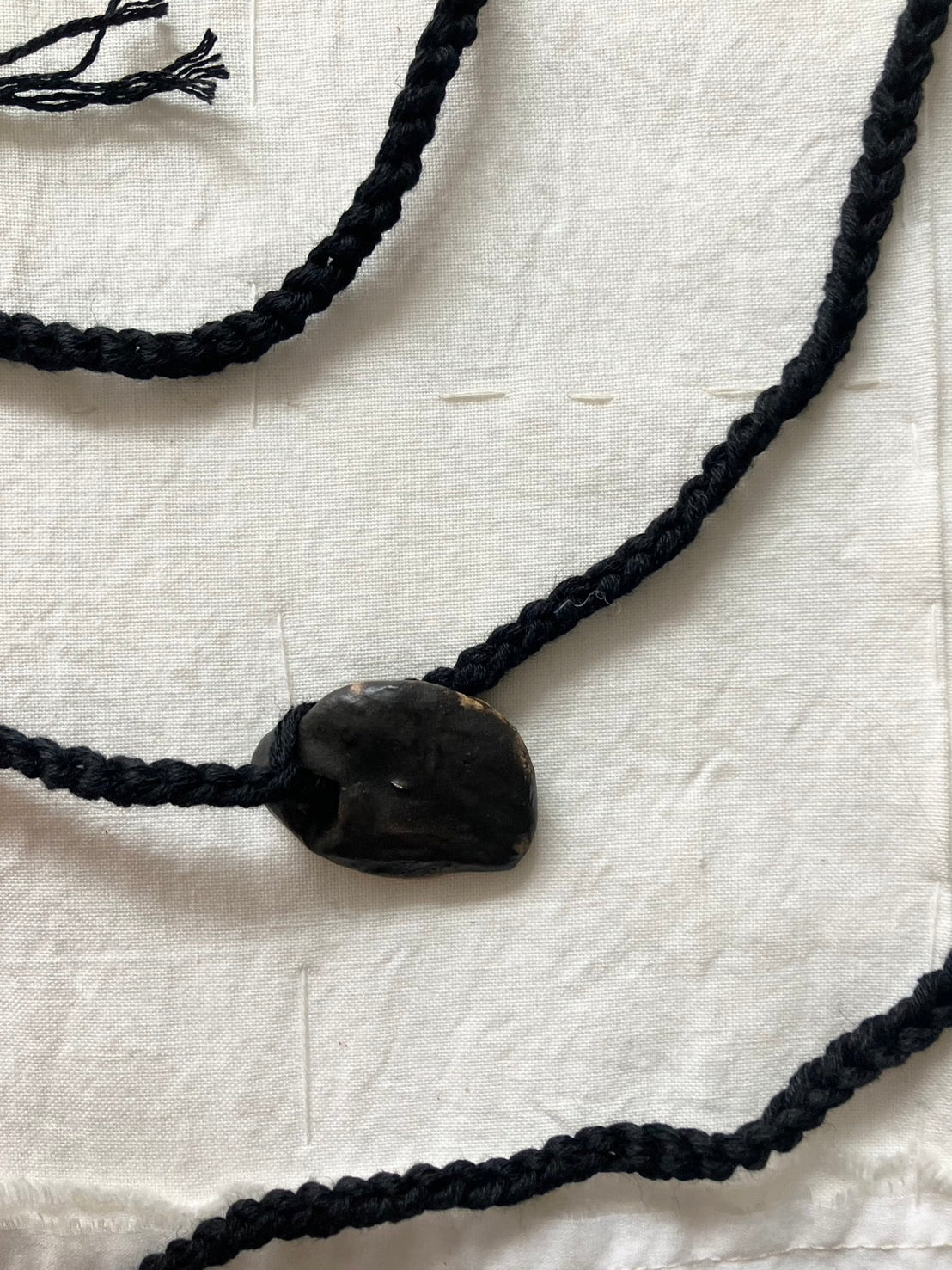 海の瞬間とその動きをイメージしたハンドメイドのセラミックをあしらった手編みベルト。