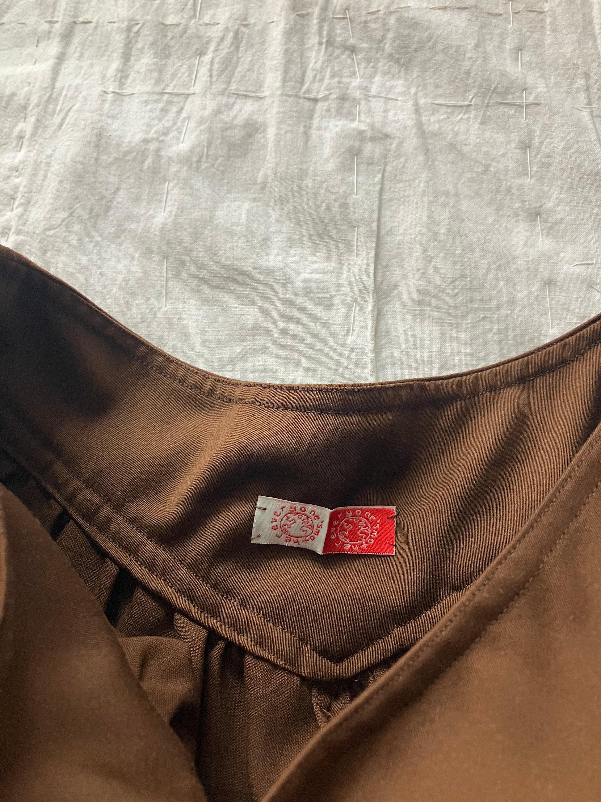 デッドストック生地と、ヴィンテージのマザー・オブ・パール・ボタンが使用されています。