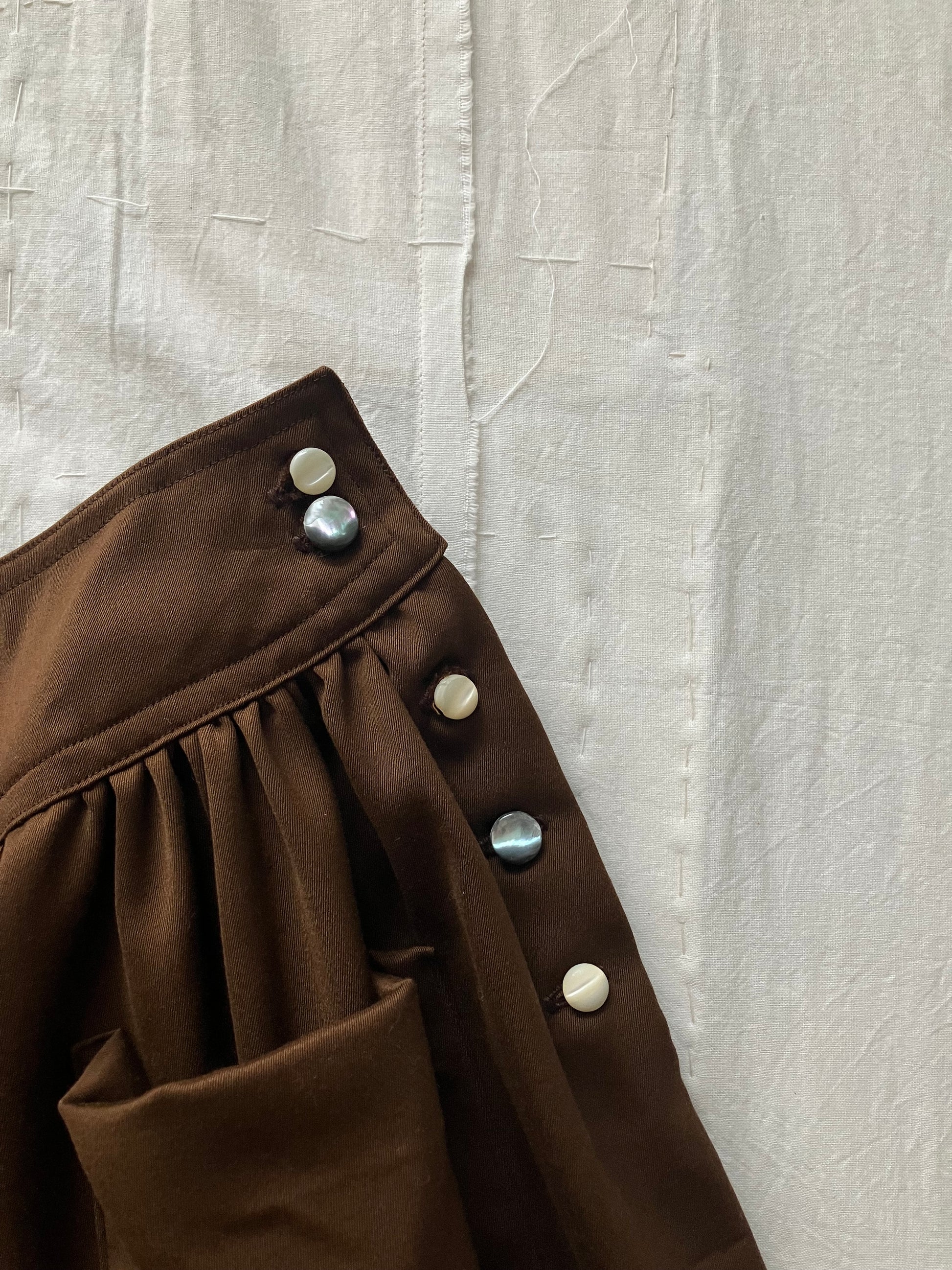 家族が着ている服からインスピレーションを得ることが多く、garden skirt はそのようにして作られたはじめてのアイテム。おばあちゃんが着ていたとても美しいヴィンテージのスカートをオマージュしたものなんだそう。♡