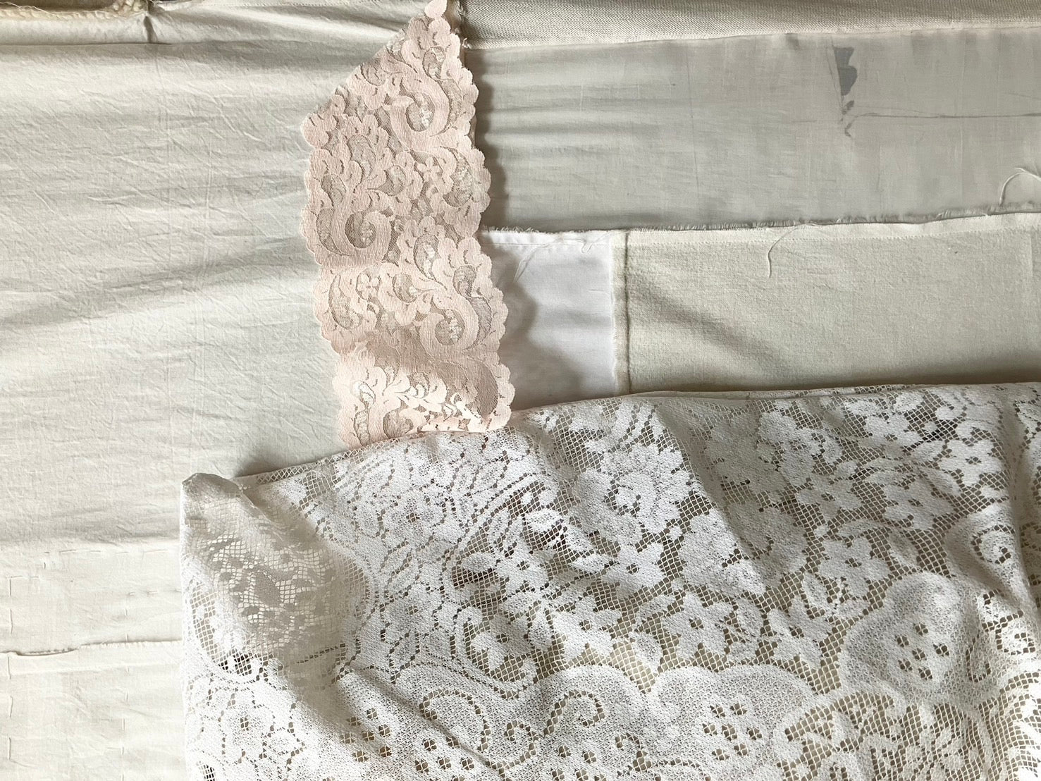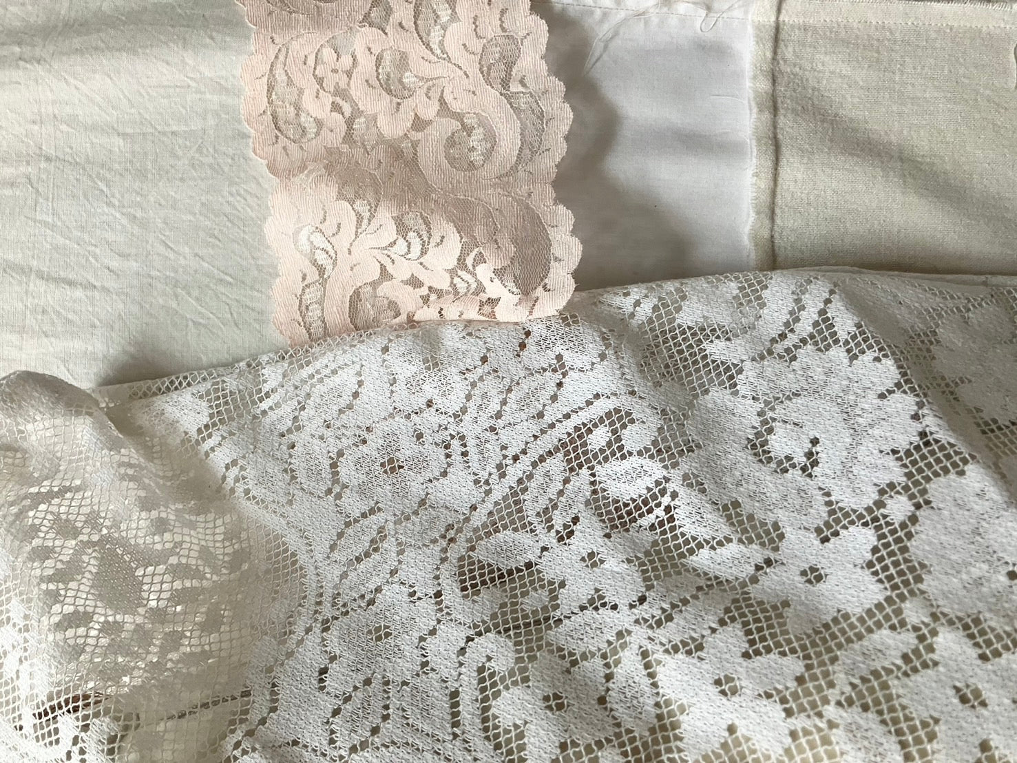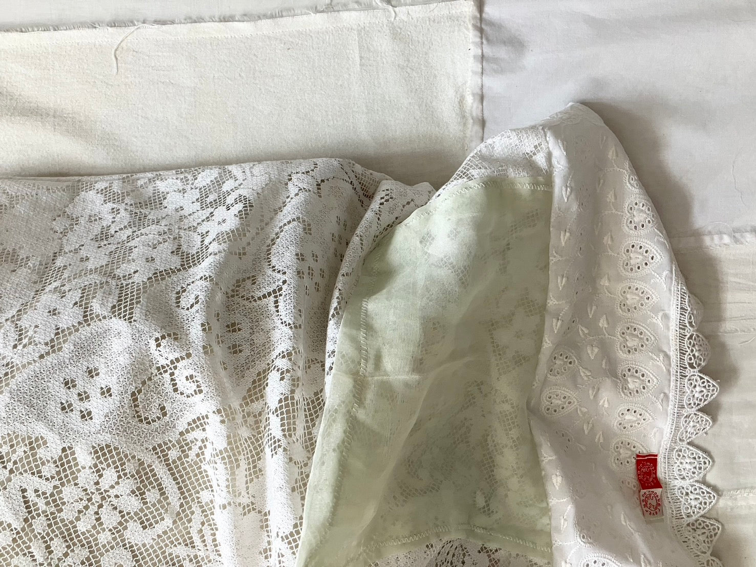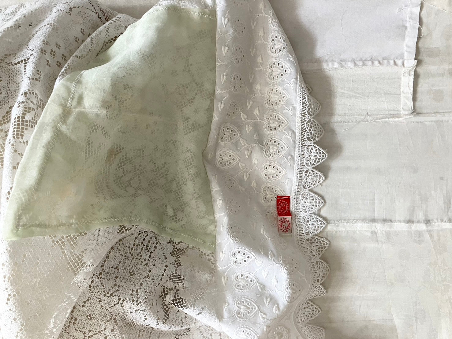 everyone's motherのアイテムが制作される際に生まれた、布の切れ端やリボンの欠片など、残布を使って作られたクッションカバー。残布の偶然の形がそのままデザインとして生かされていて、とっても愛らしい表情です。