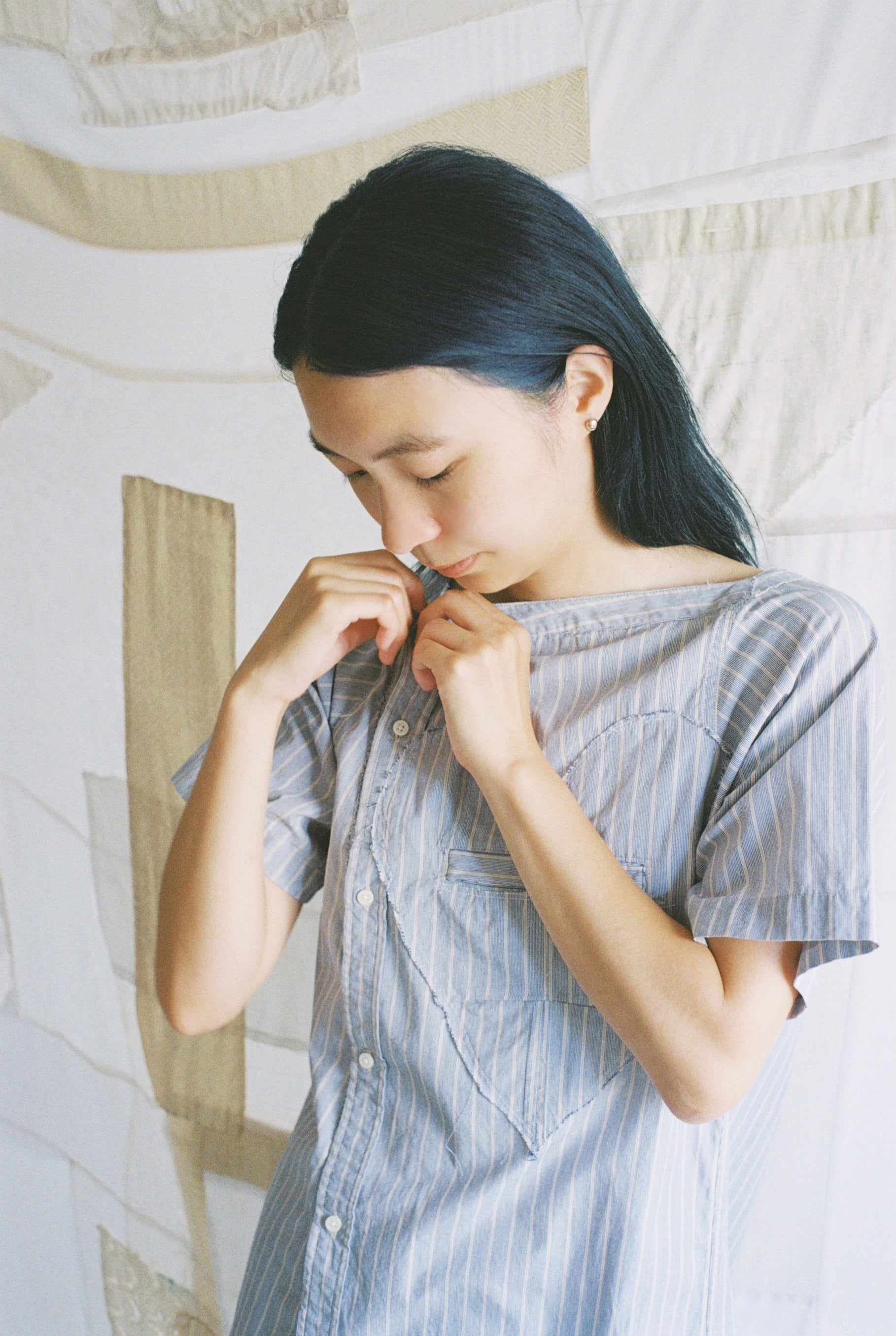一着一着に、本来役割を持っていたパーツの面影や残布の形など、素材の小さなチャームポイントが生かされた偶然のデザインが詰まっています。