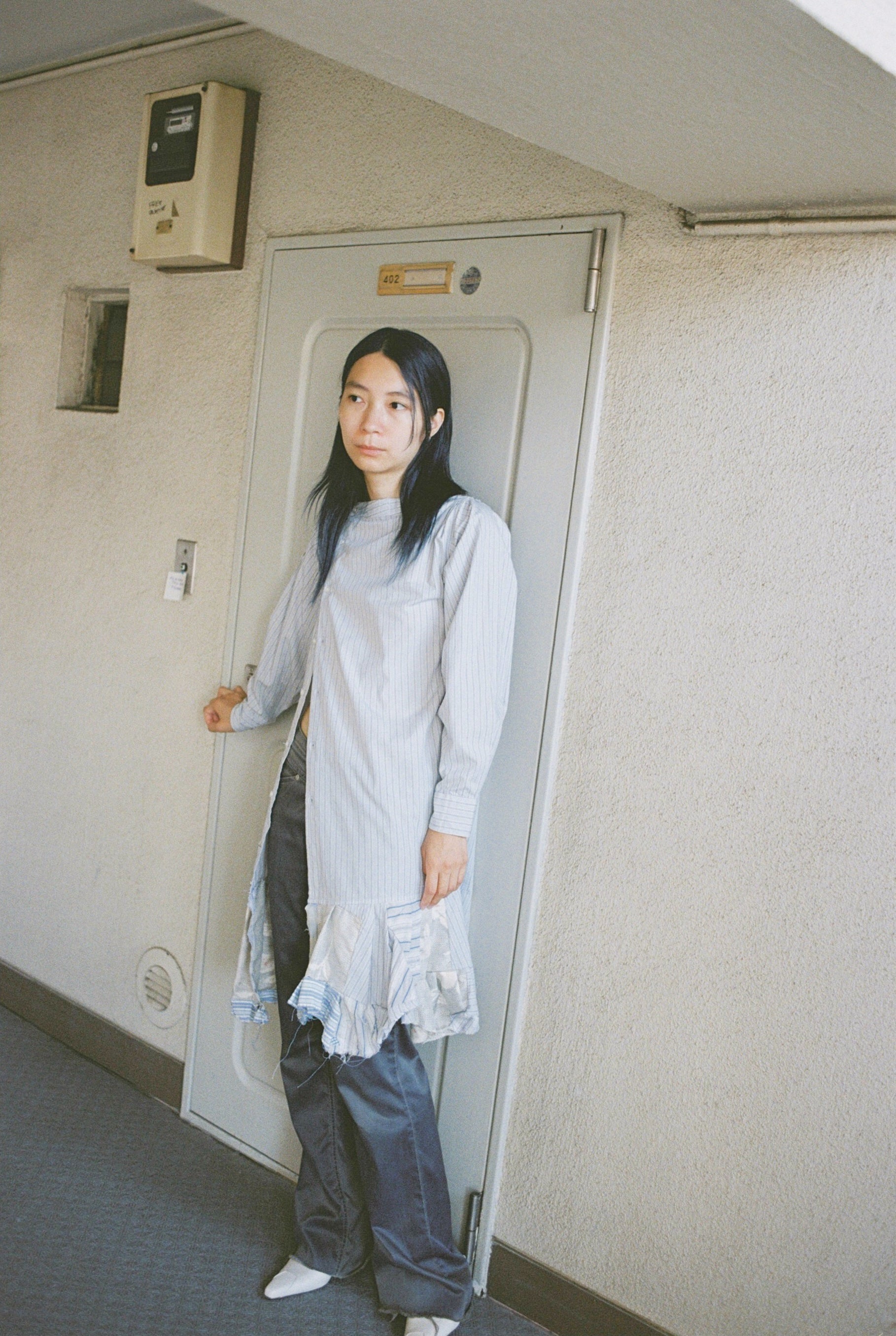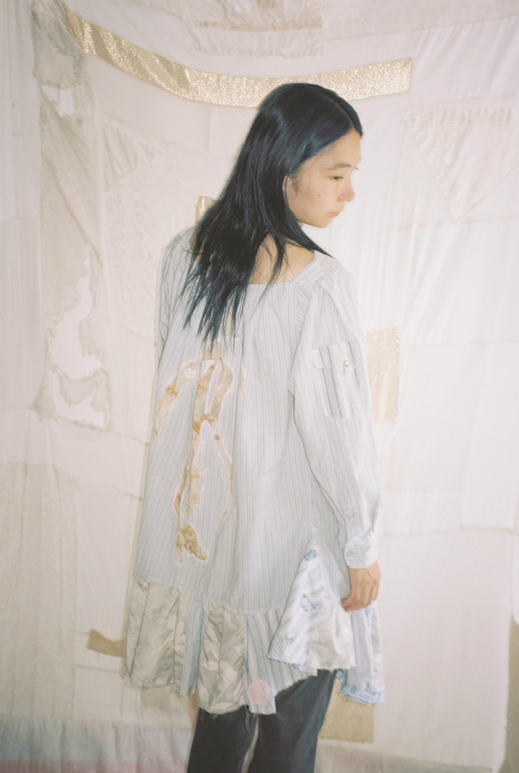 一着一着に、本来役割を持っていたパーツの面影や残布の形など、素材の小さなチャームポイントが生かされた偶然のデザインが詰まっています。