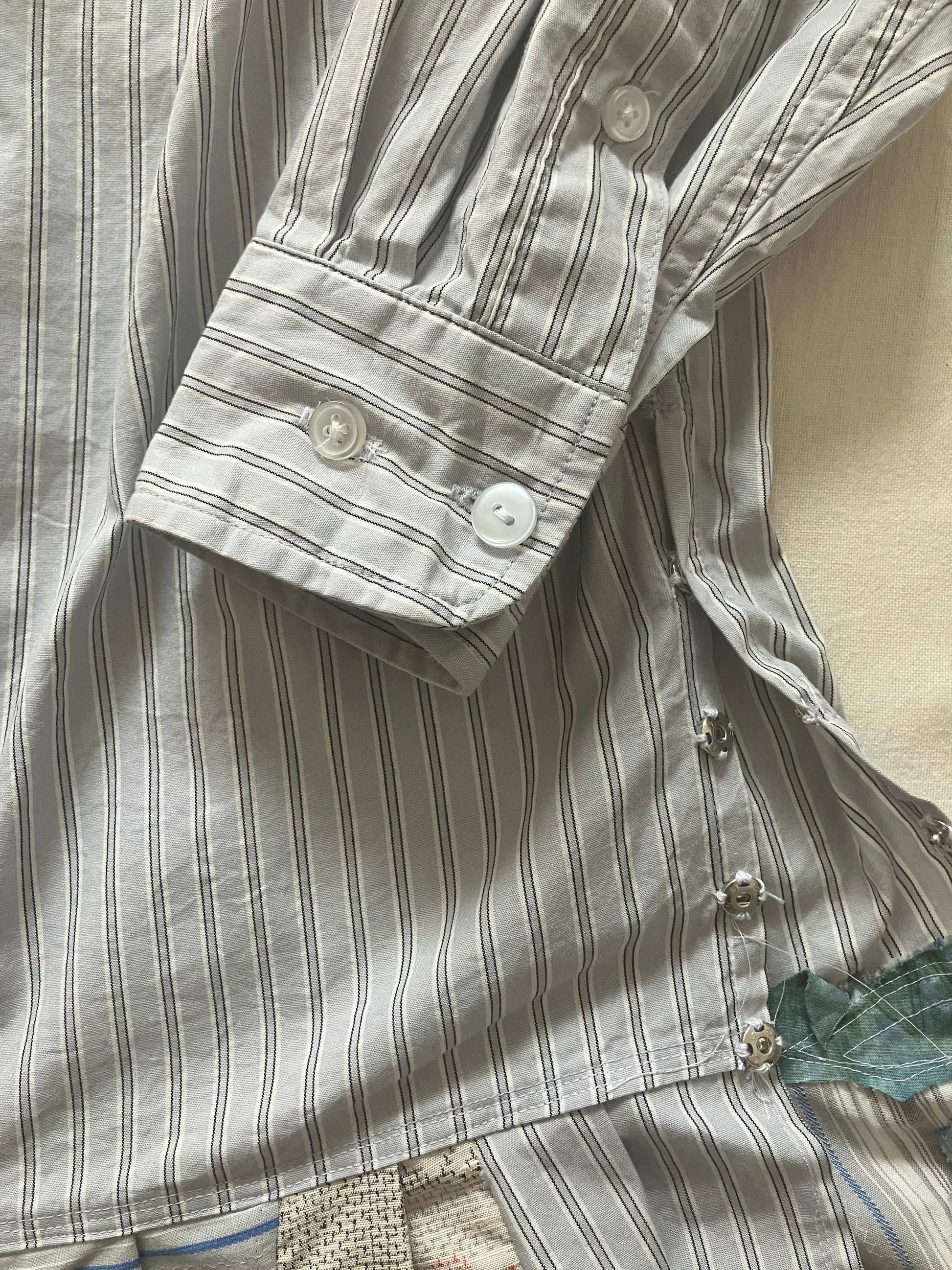 小さく繊細な工夫がいくつも詰まっていますが、切りっぱなしでバッサリと仕上げられている部分もあります。着用や洗濯を繰り返しながら、増えたり変化するほつれの表情もお楽しみいただけそうです。