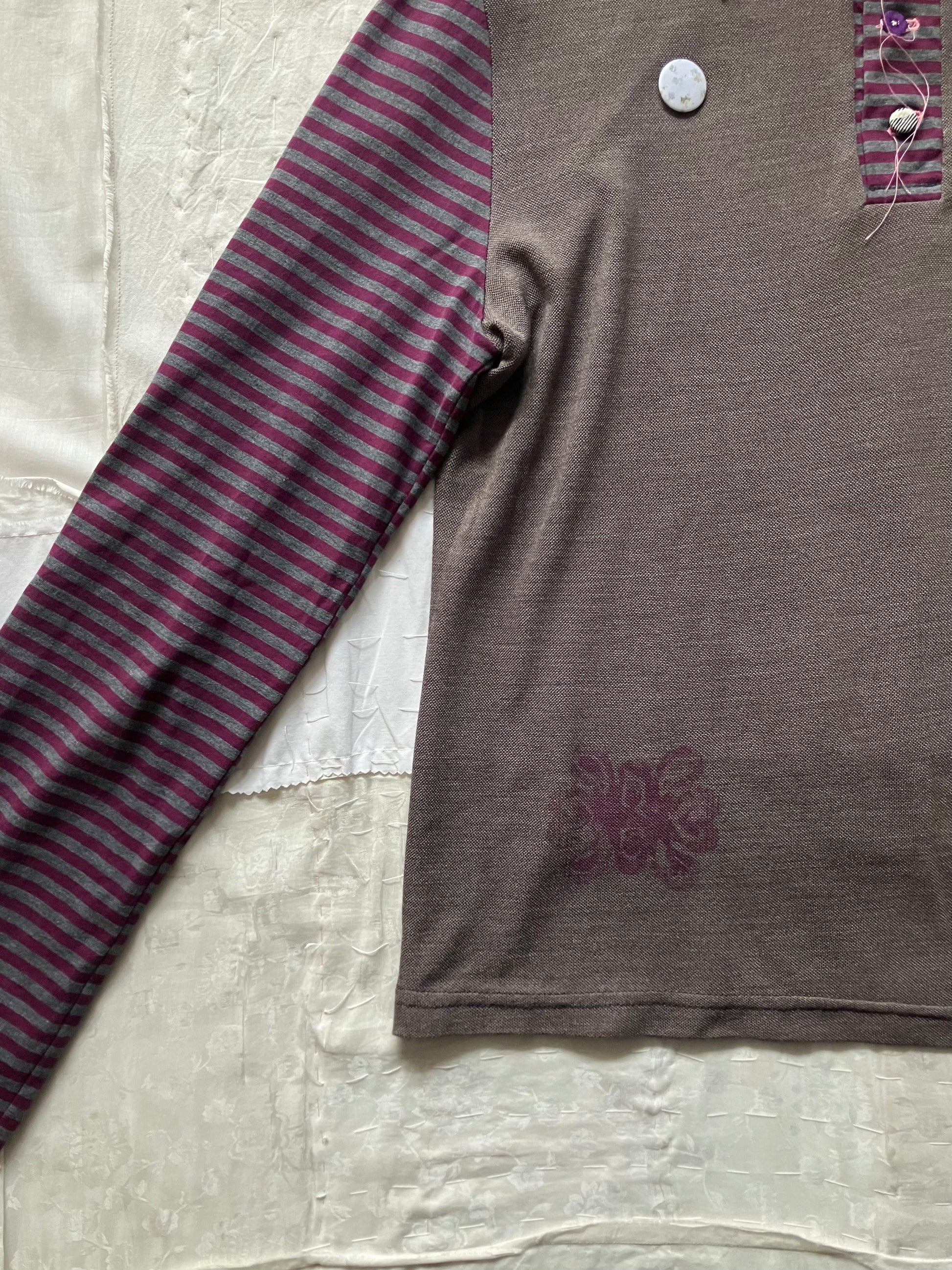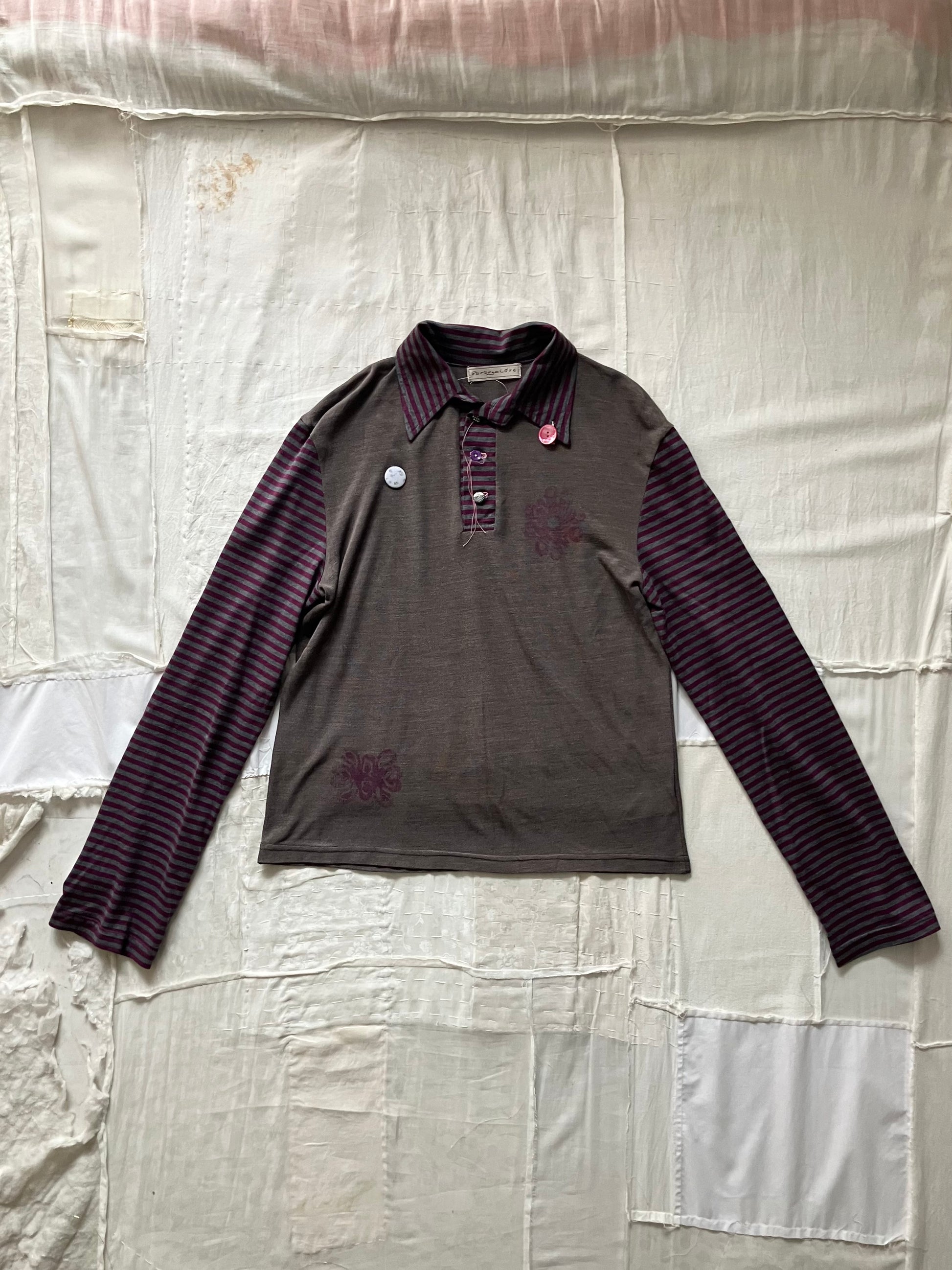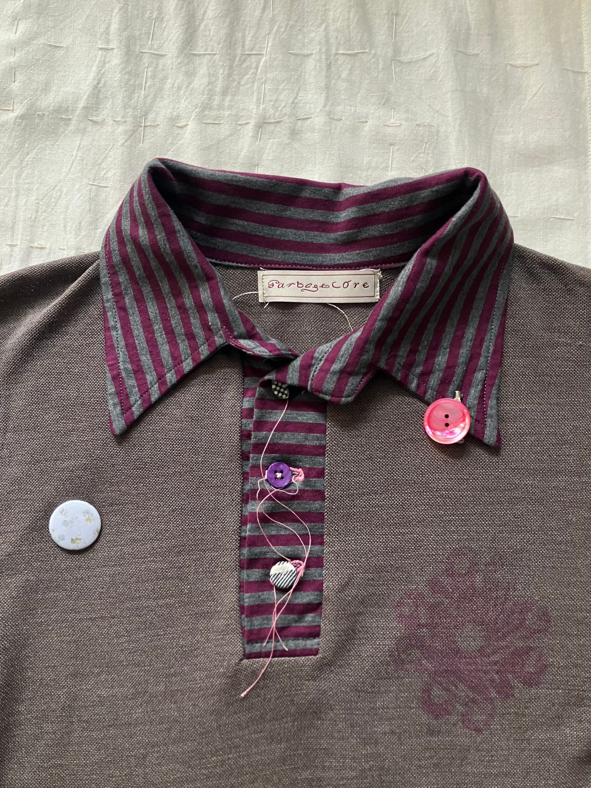 ピンは、ヴィンテージのボタンや、ヴィンテージの布地のテキスタイルを用いて作られたオリジナルのもの。自分の好きな場所に付け替えたり、他の服やバッグに付け替えたりしてもお楽しみいただけます。♡