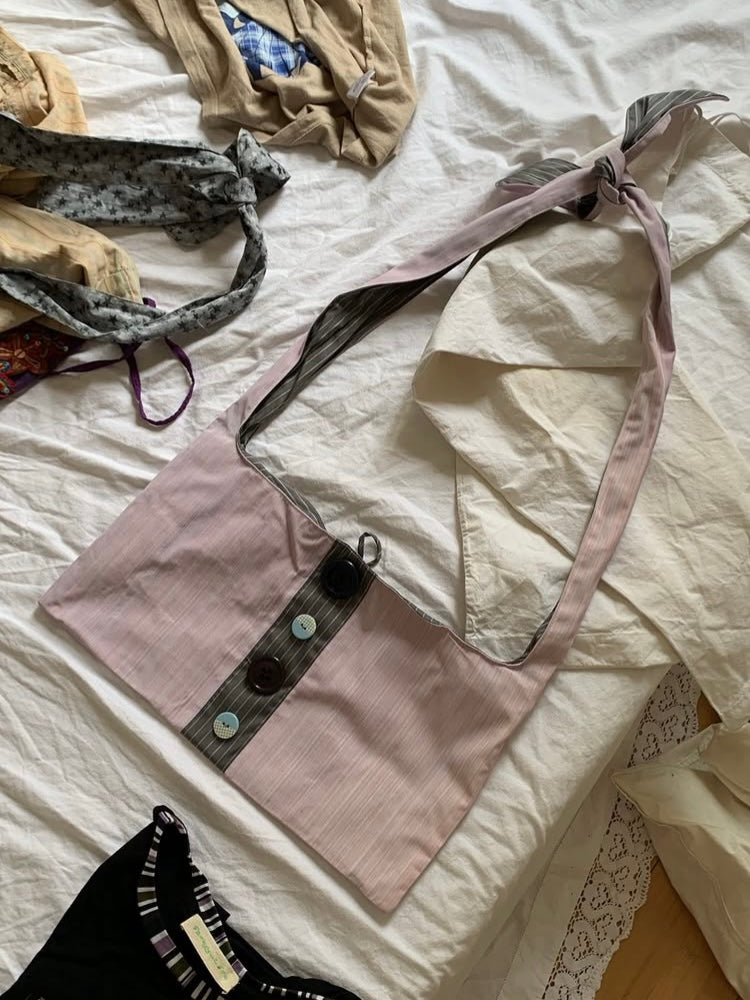 デッドストックやセカンドハンドの生地やボタンを使って手作りされた、一点もののバッグ。