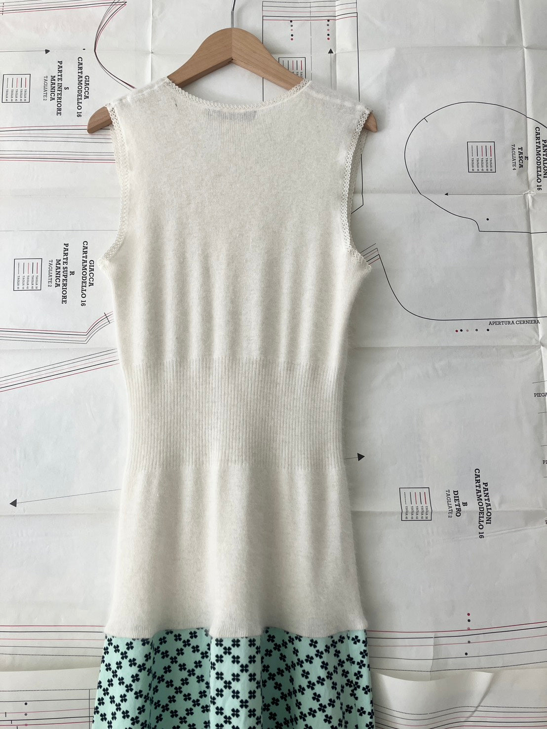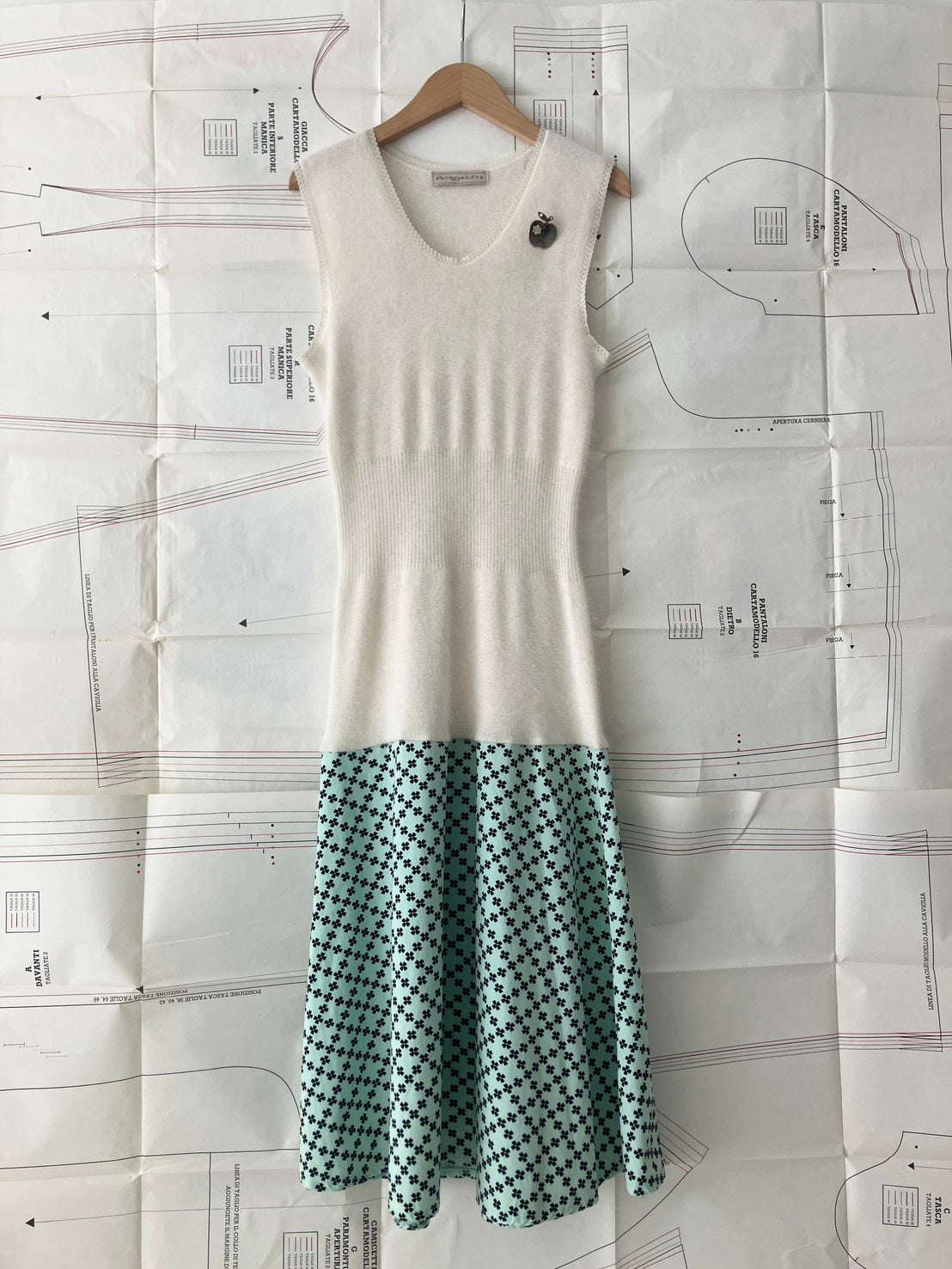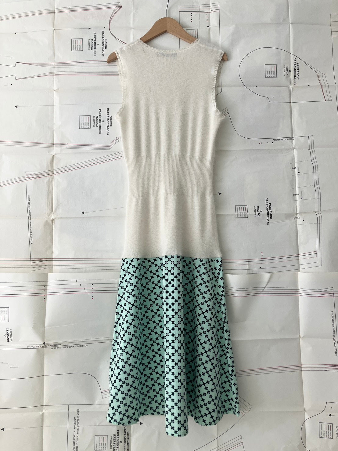 ヴィンテージのタンクトップとデッドストック生地を組み合わせて作られた、冬用ドレス。