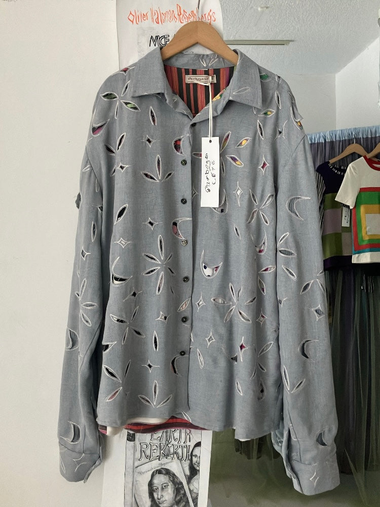 生産された後に使われることなく眠っていたデッドストックの生地や、厳選した古着を解体して素材に戻した生地やボタンを組み合わせて作られた、一点もののシャツ。