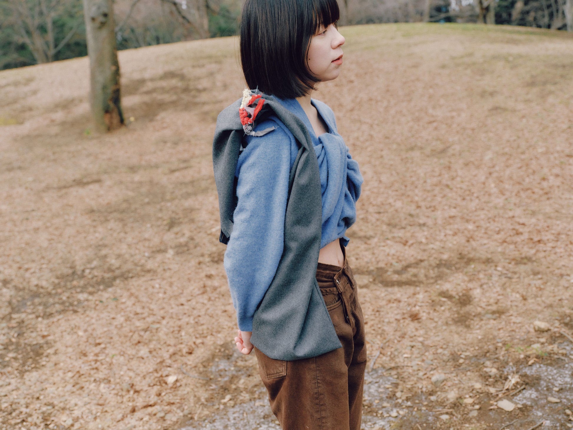 お腹の下あたりにスナップボタンがついていて、開けたまま肌を大胆に見せたり、閉じて控えめな印象にしたり、スタイリングの表情の変化をお楽しみいただけます。