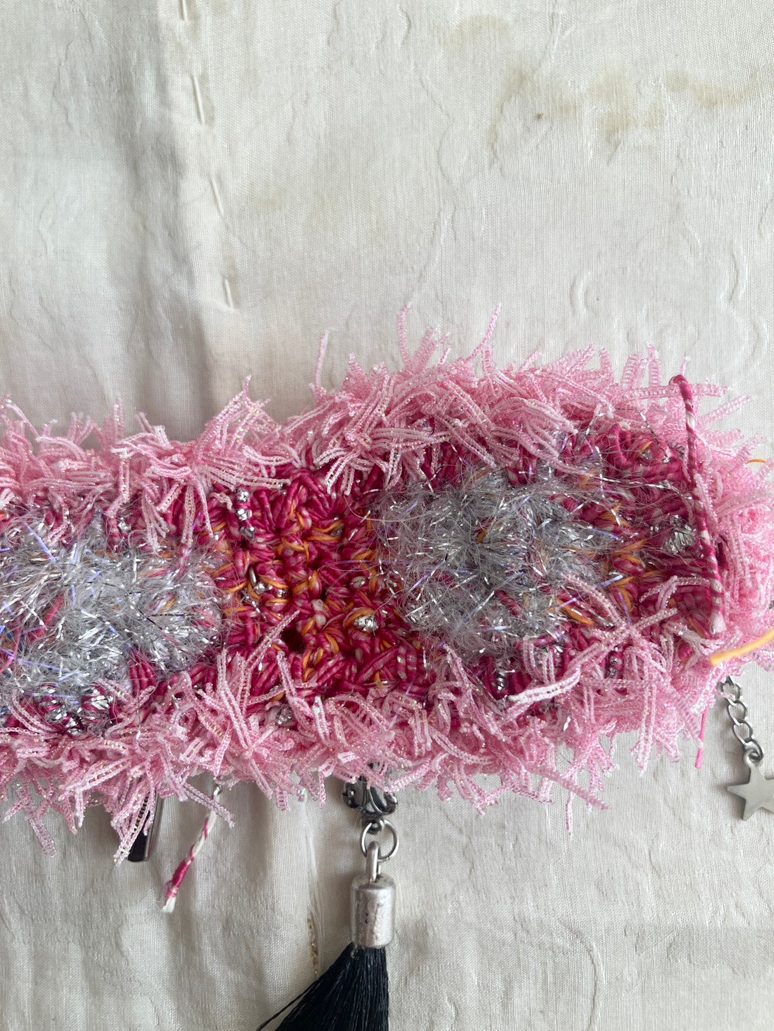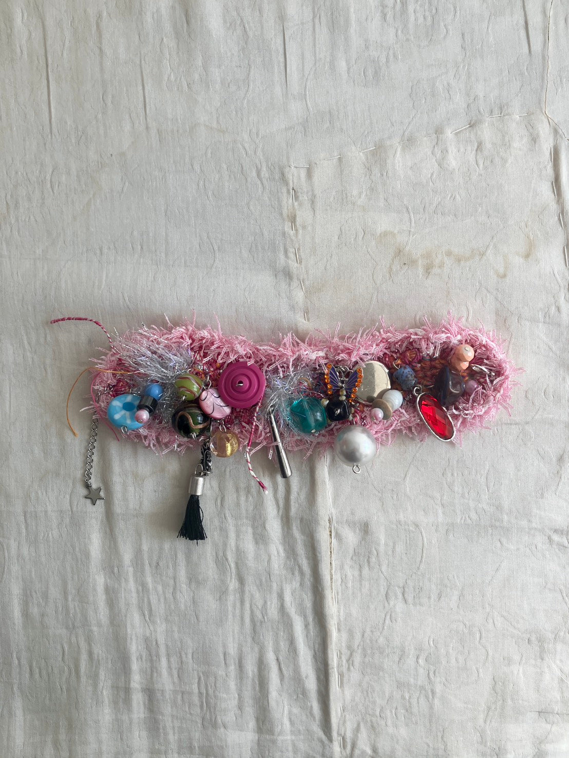 デザイナーMathilde Hiron自身が制作した、一点もののブレスレット。長年をかけて集めたオートクチュールメゾンの貴重なデッドストック系を使用し、専門性の高い織り技術を用いて生み出されています。
