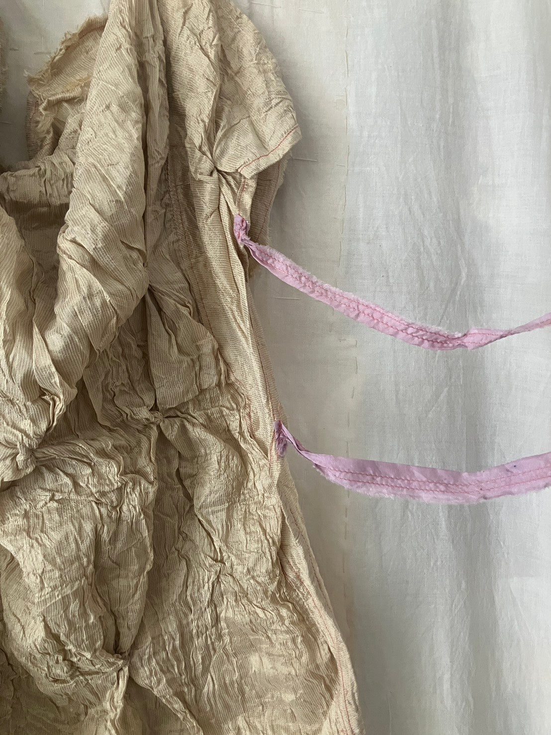 エプロンのように首元と腰でリボンを結んで、お好みのシルエットで着用してください。