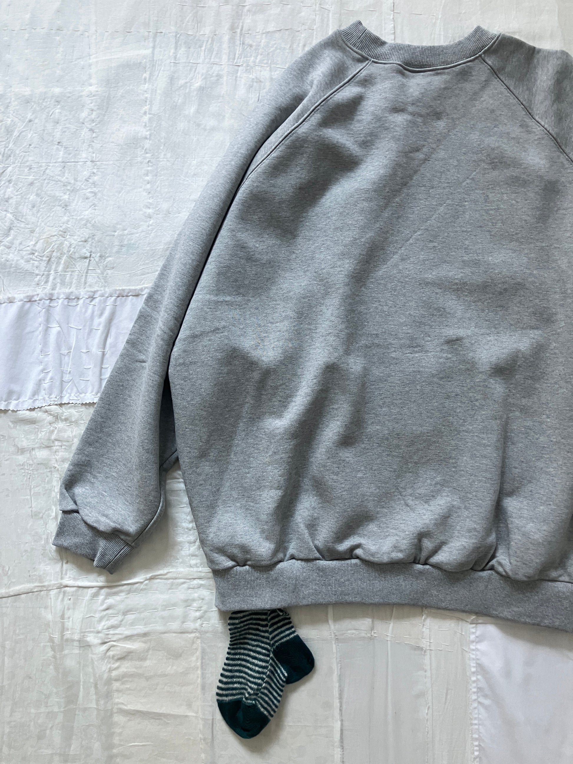 ベースのロゴスウェットは、韓国でファッション市場の大量生産過程で廃棄されたスウェット生地を入手し、オリジナルのパターンを用いて一着一着製作されました。