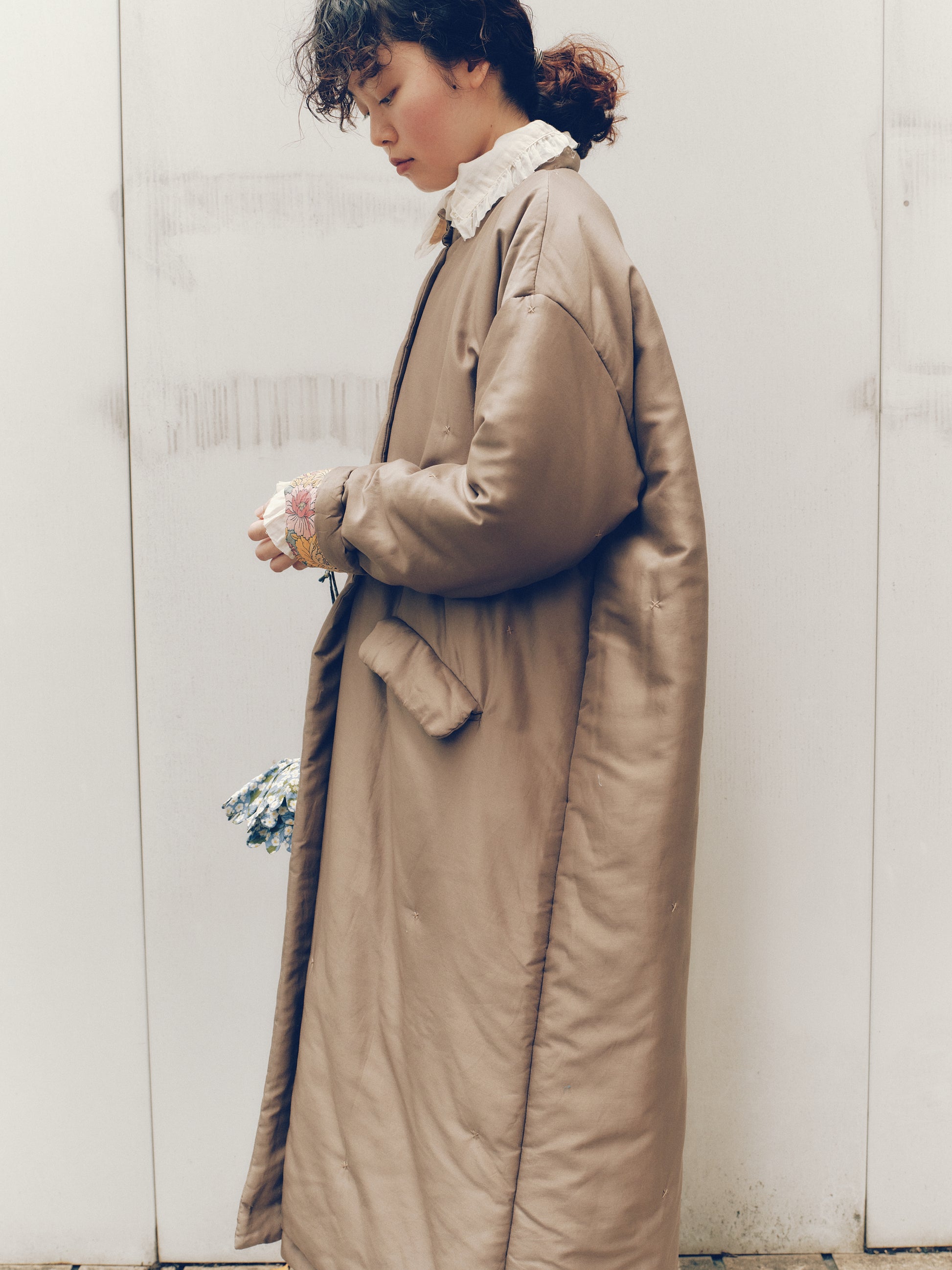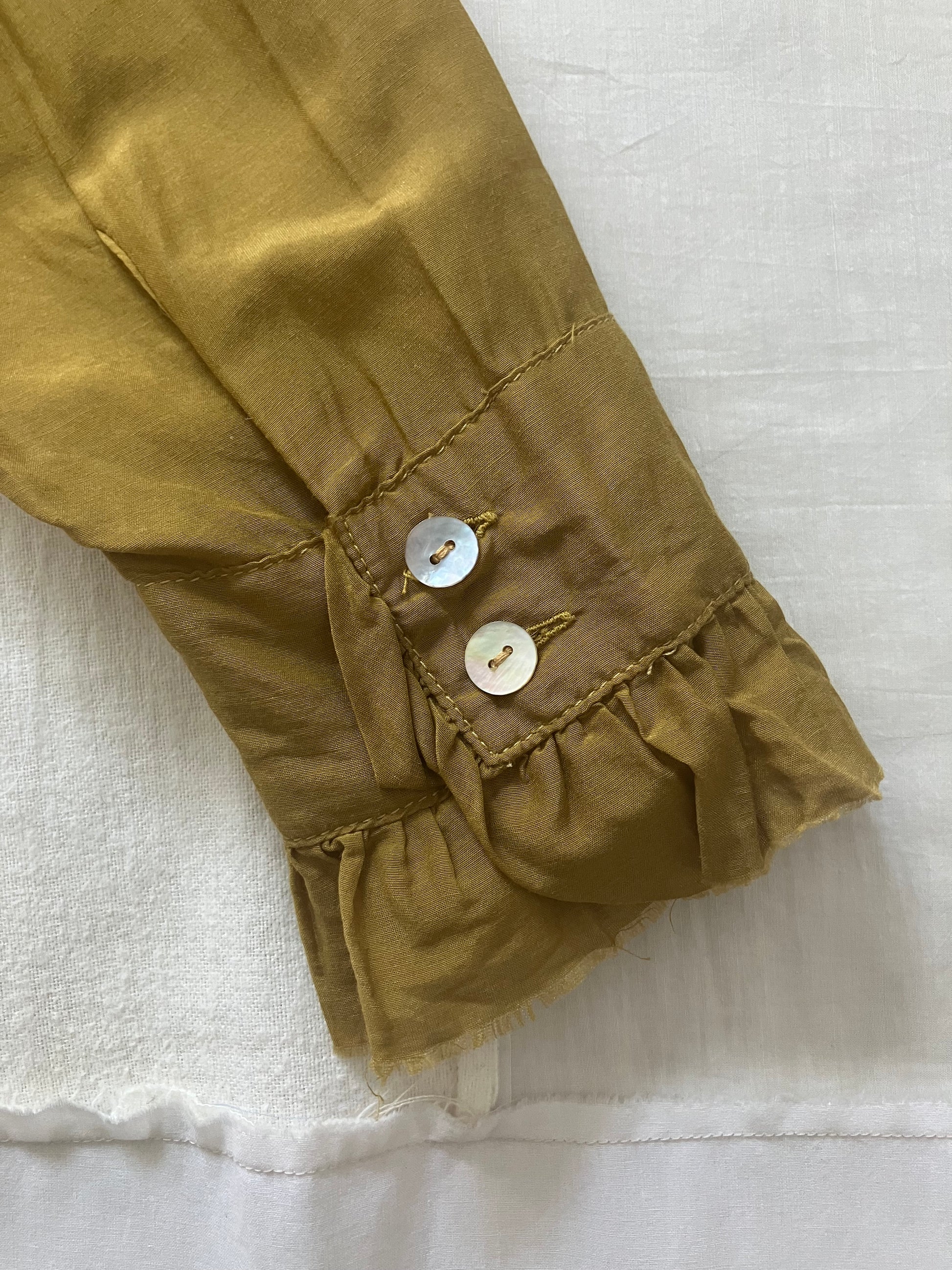 くしゅくしゅと不均等なフリルが襟と袖口に施されています。切りっぱなしなので、着用や洗濯を繰り返すたびにワイルドなほつれが増えていきます。