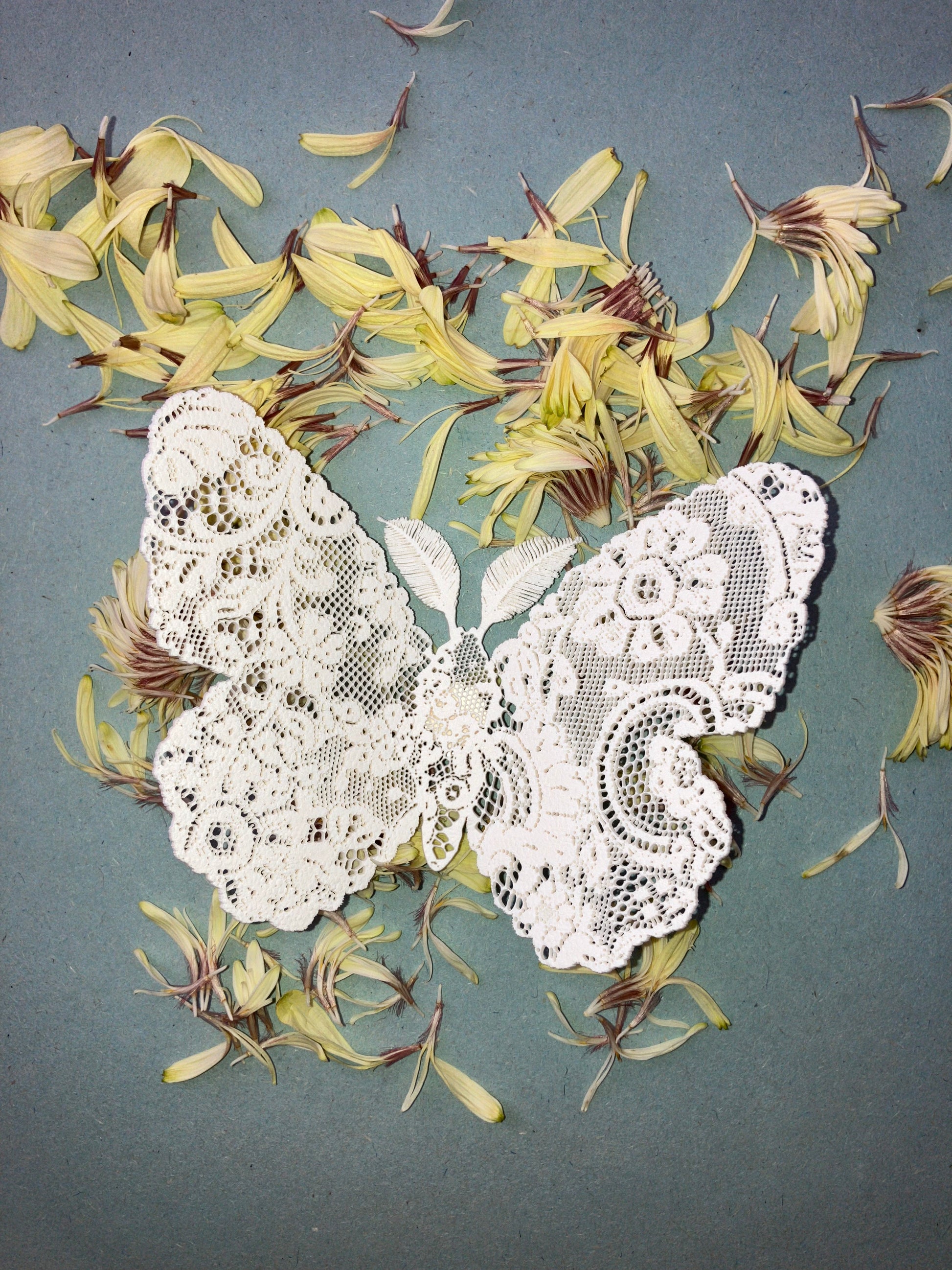 独自のレースペーパー作製技法を用いて一つ一つ作られた、蝶のマグネット。